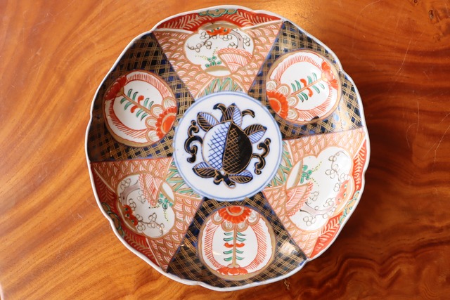 伊万里焼 色絵 花文 桃手 中皿 七寸