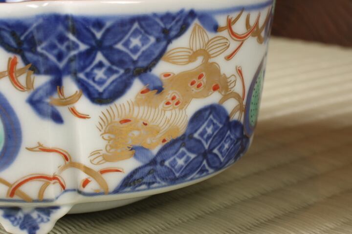 大聖寺伊万里 色絵 獅子七宝文 足付 向付