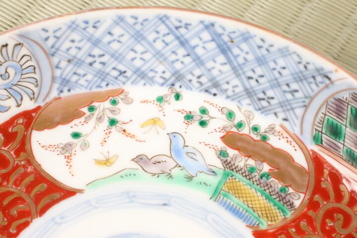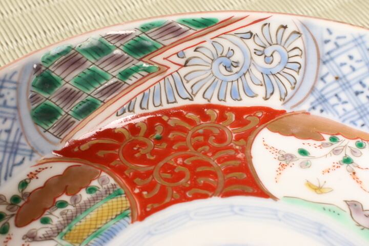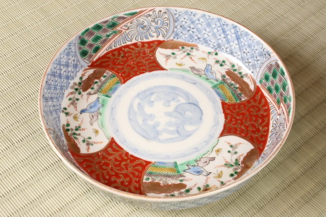 伊万里焼 色絵 龍鳥蝶文 中皿 五寸