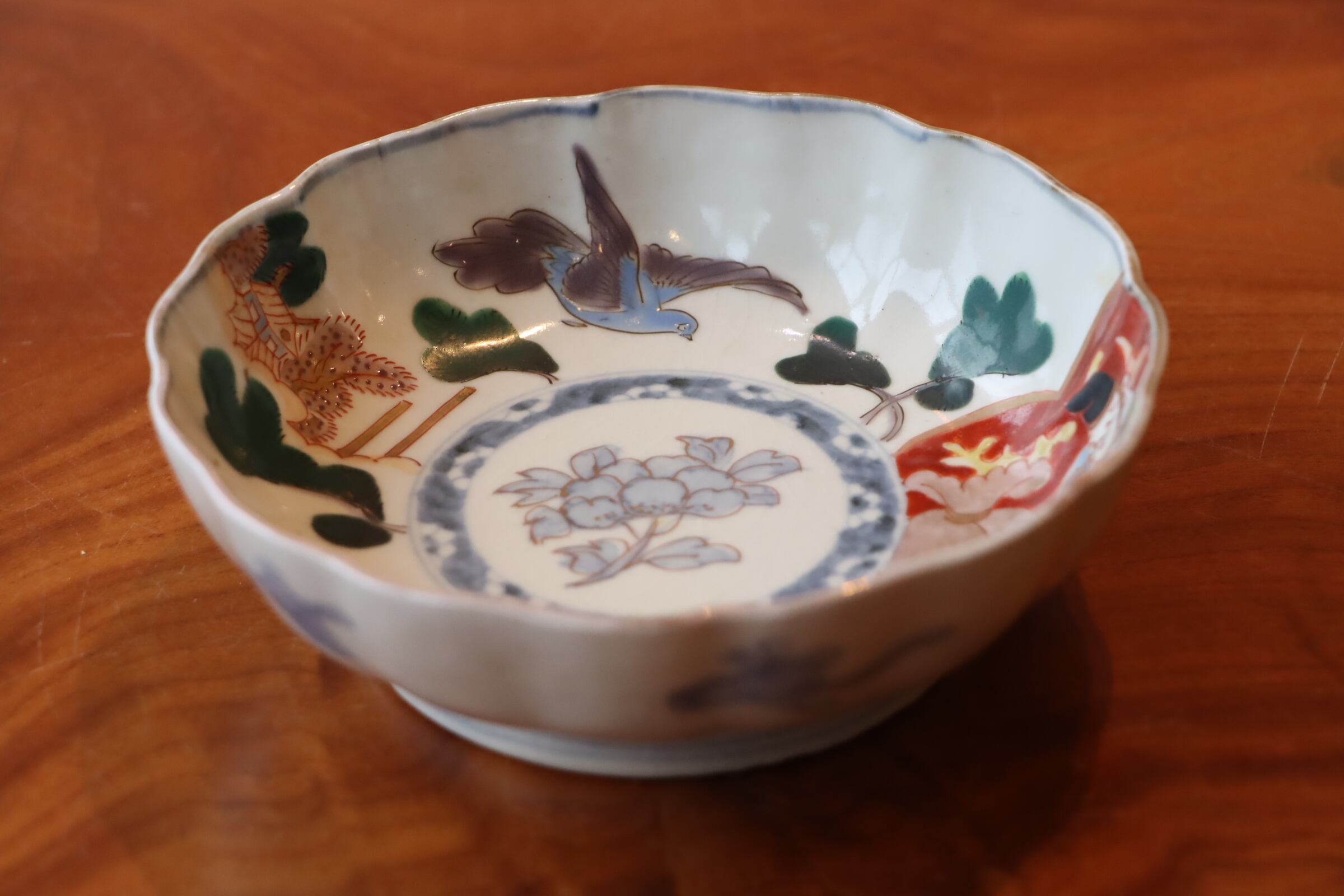 伊万里焼 色絵 鳥松恵比寿文 膾皿