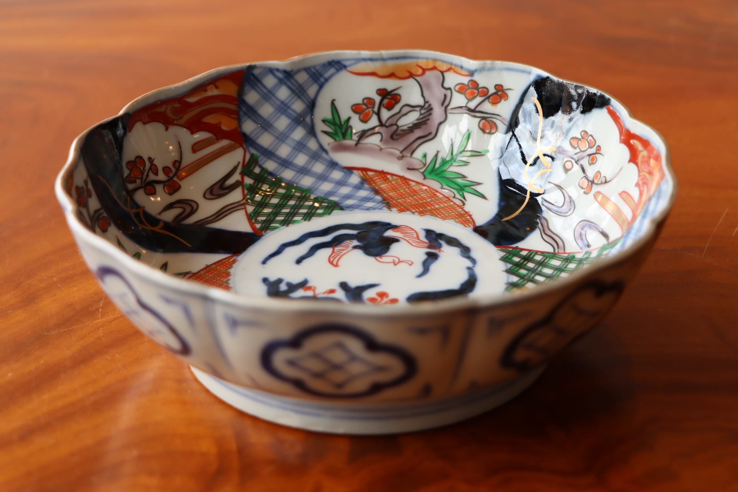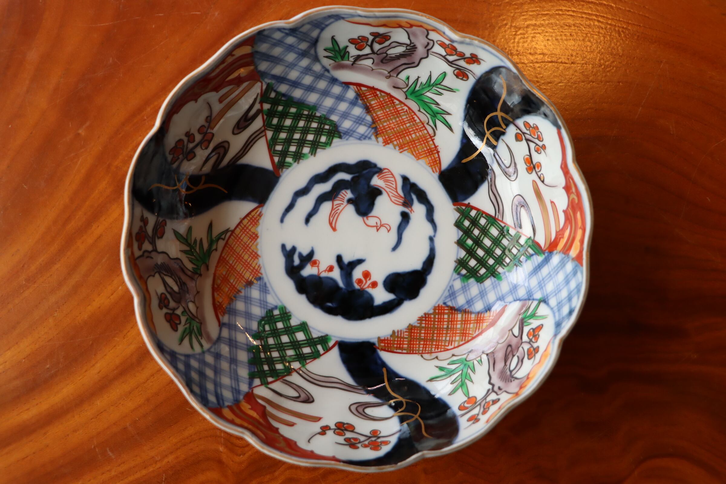 伊万里焼 色絵 鳳凰捻り文 大振り膾皿