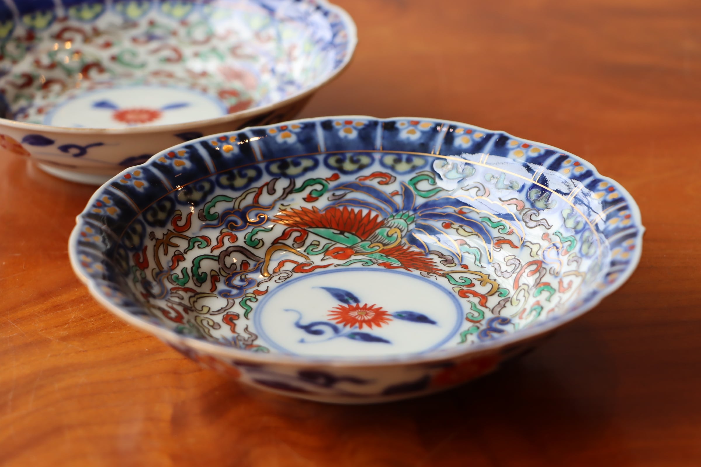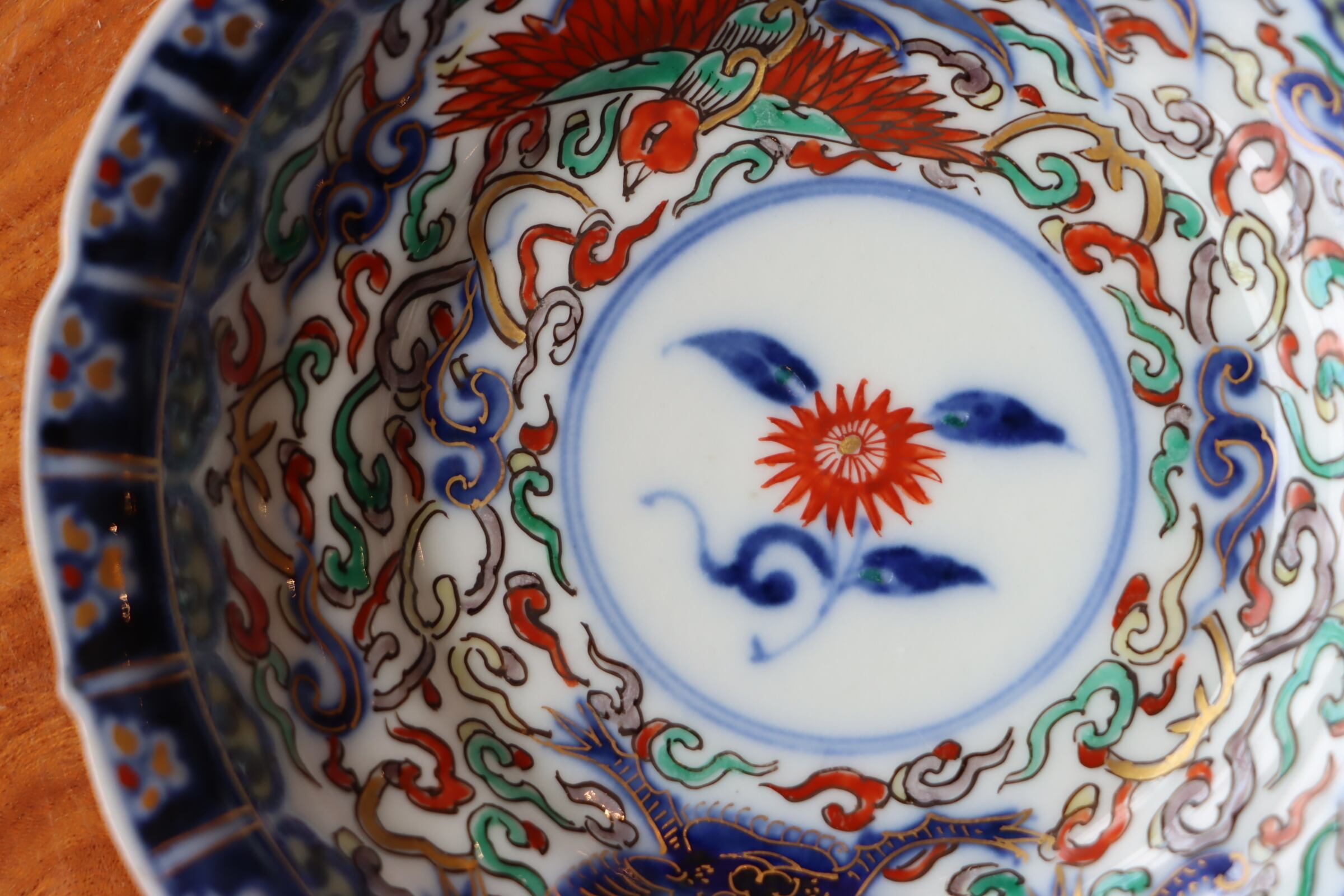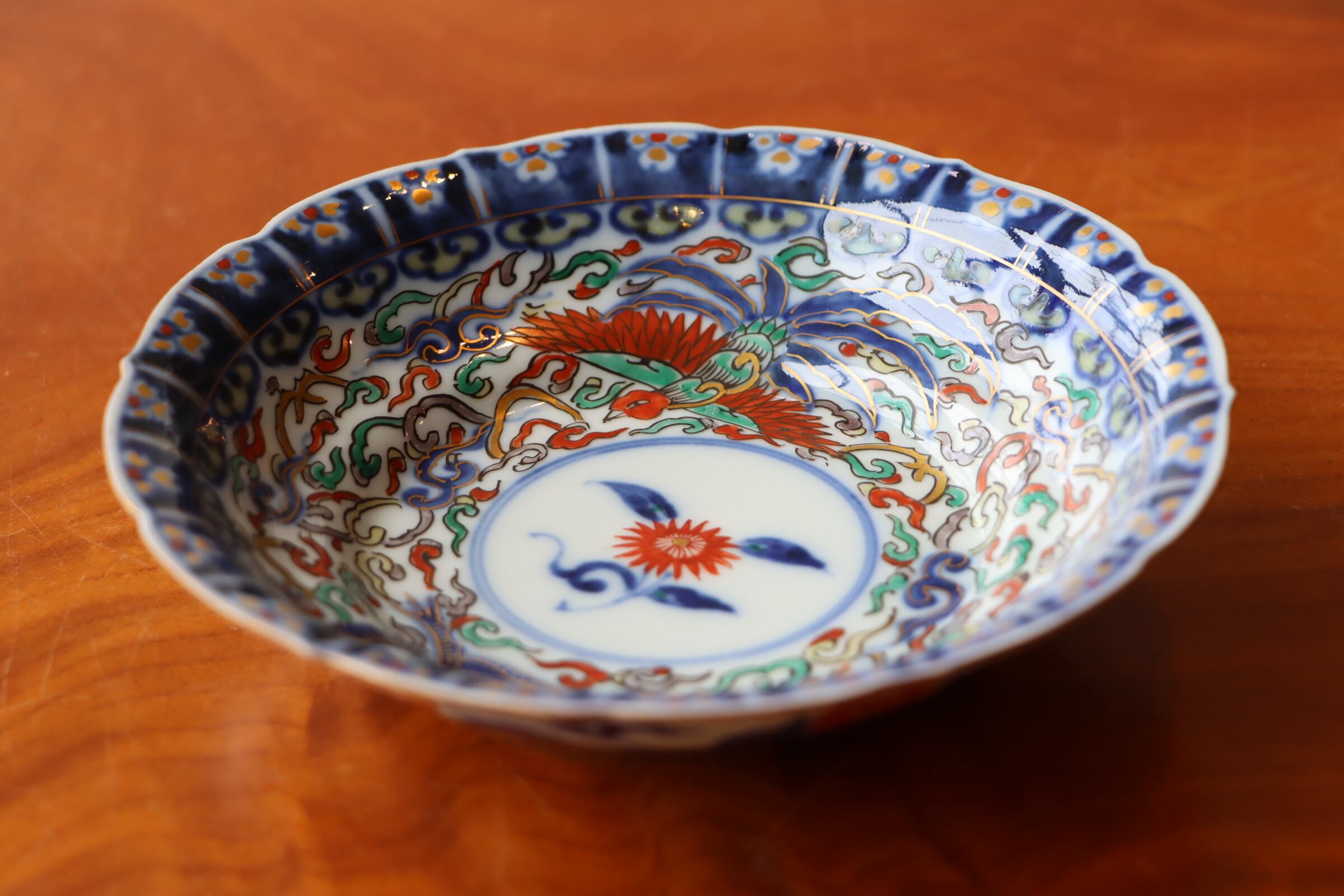 大聖寺伊万里 色絵 龍鳳凰文 平向付