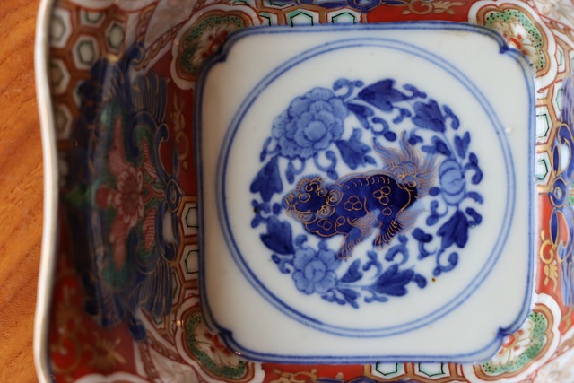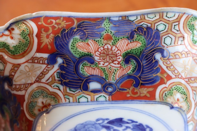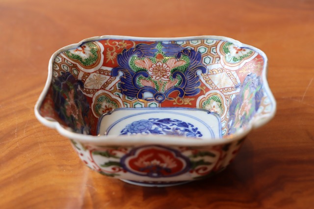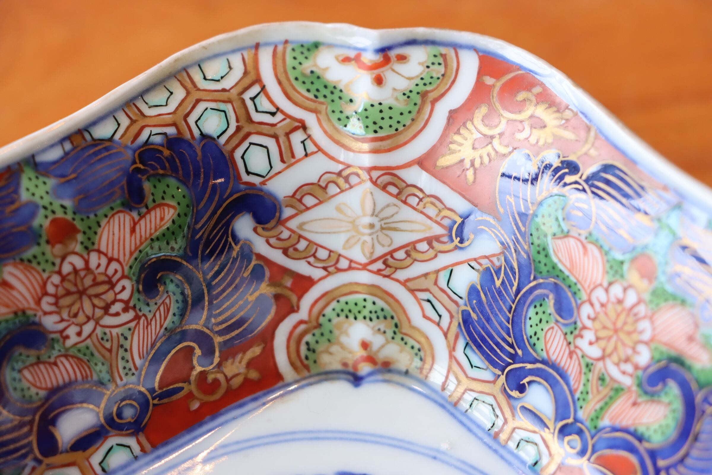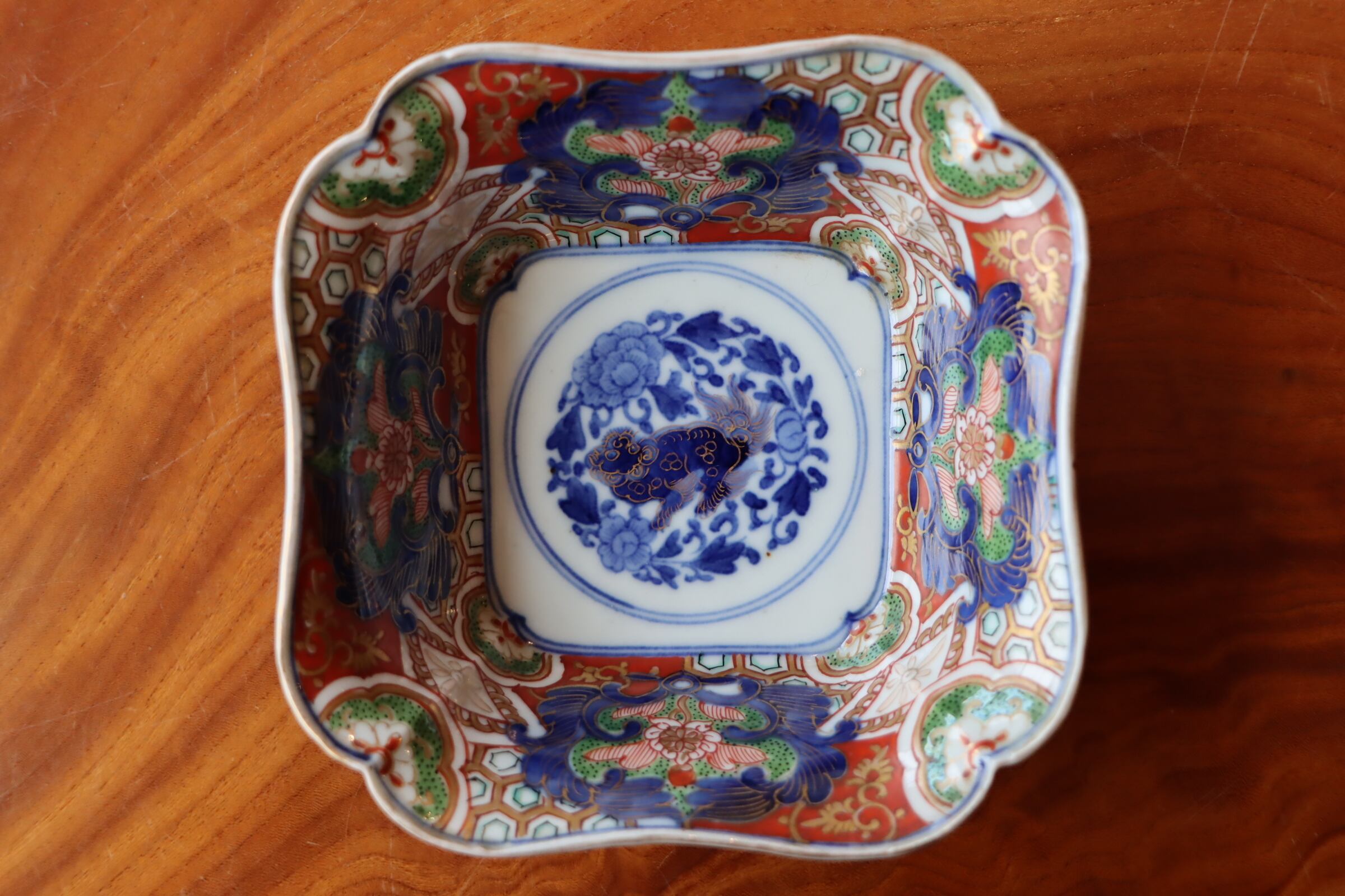 大聖寺伊万里 色絵 獅子文 四方膾皿