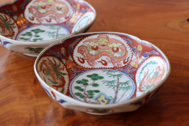 大聖寺伊万里 色絵 龍鳳凰文 膾皿
