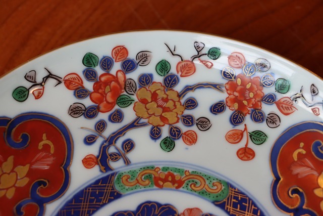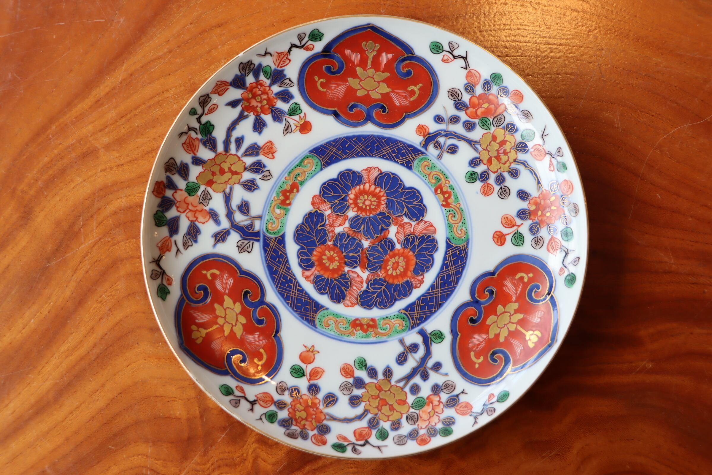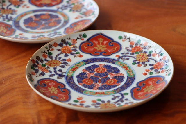 大聖寺伊万里 色絵 花文 中皿 六寸