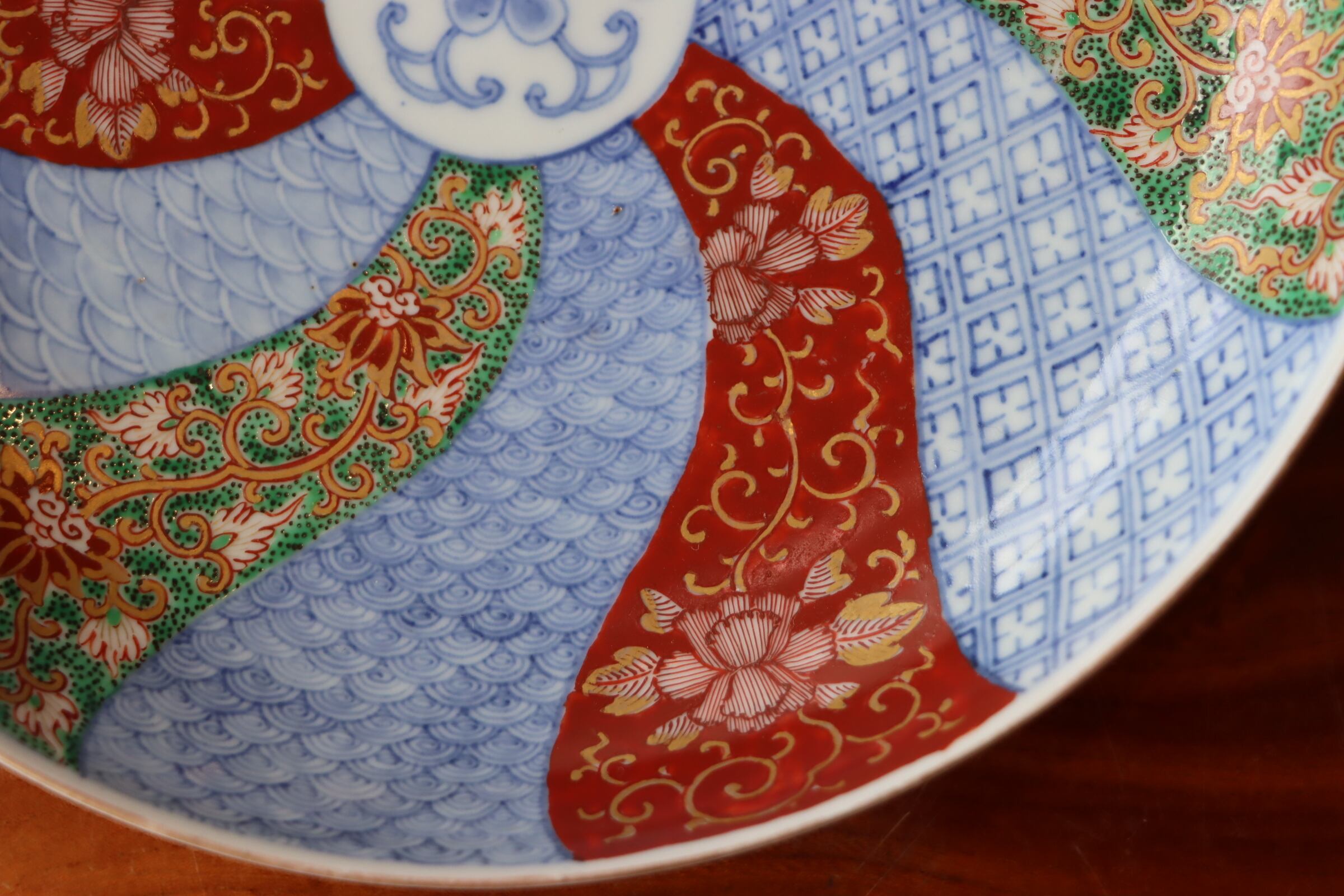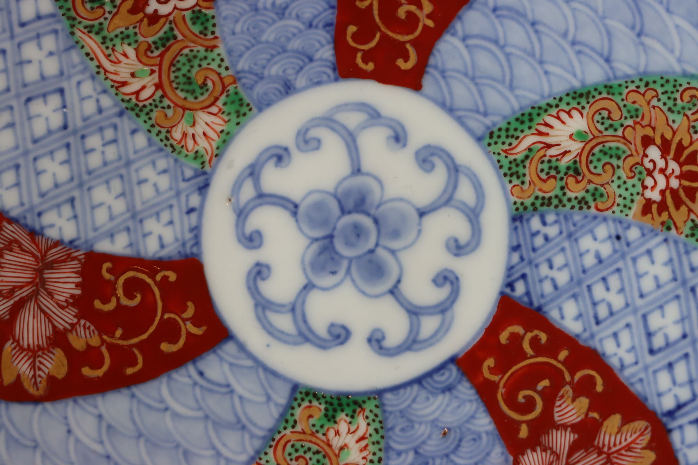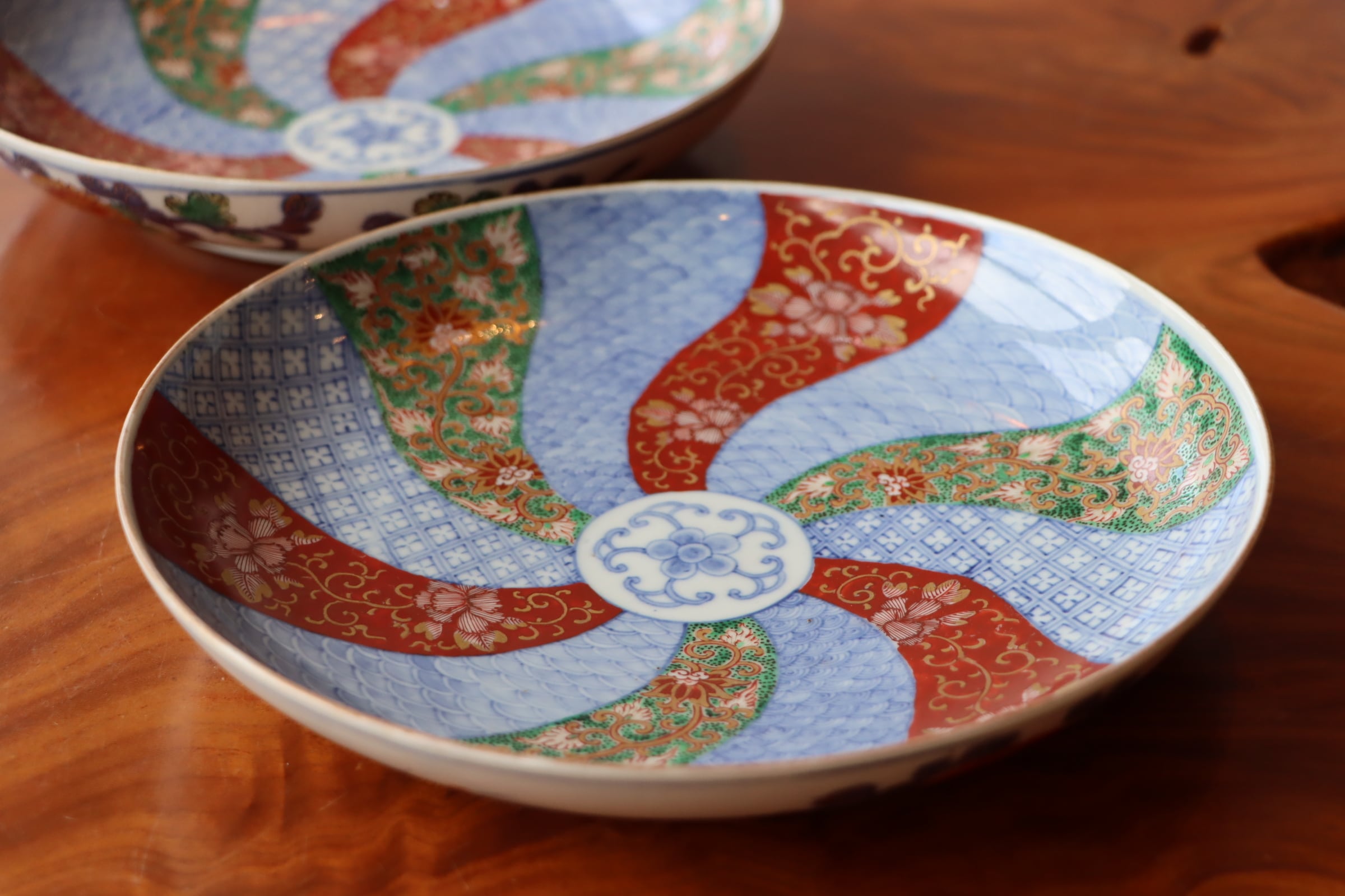 大聖寺伊万里 色絵 捻り文 中皿 七寸