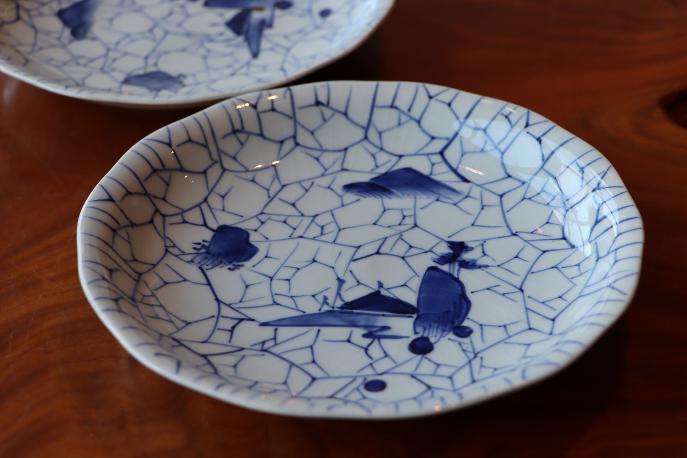 焼成時にできる鉄分やくっつき、経年による釉薬の薄れがございます。一枚一枚手描き、手作りの為、形や色、模様に多少の個体差があります。また、電子レンジや食器洗い乾燥機のご使用はお控えください。