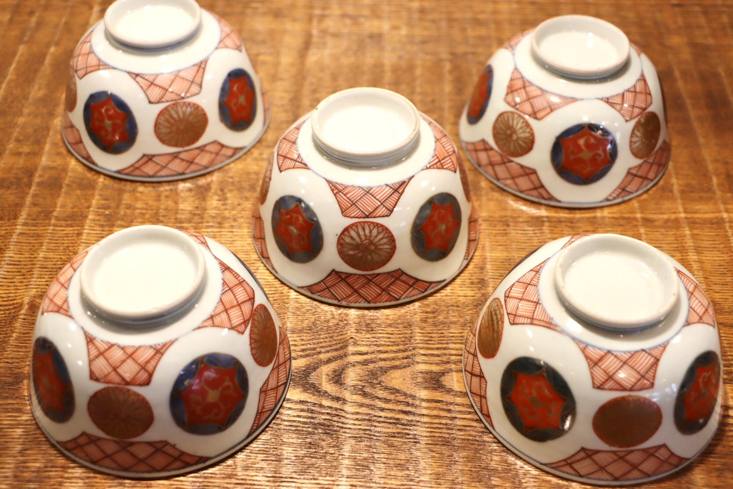 五客組 古伊万里 色絵 丸文 蓋茶碗