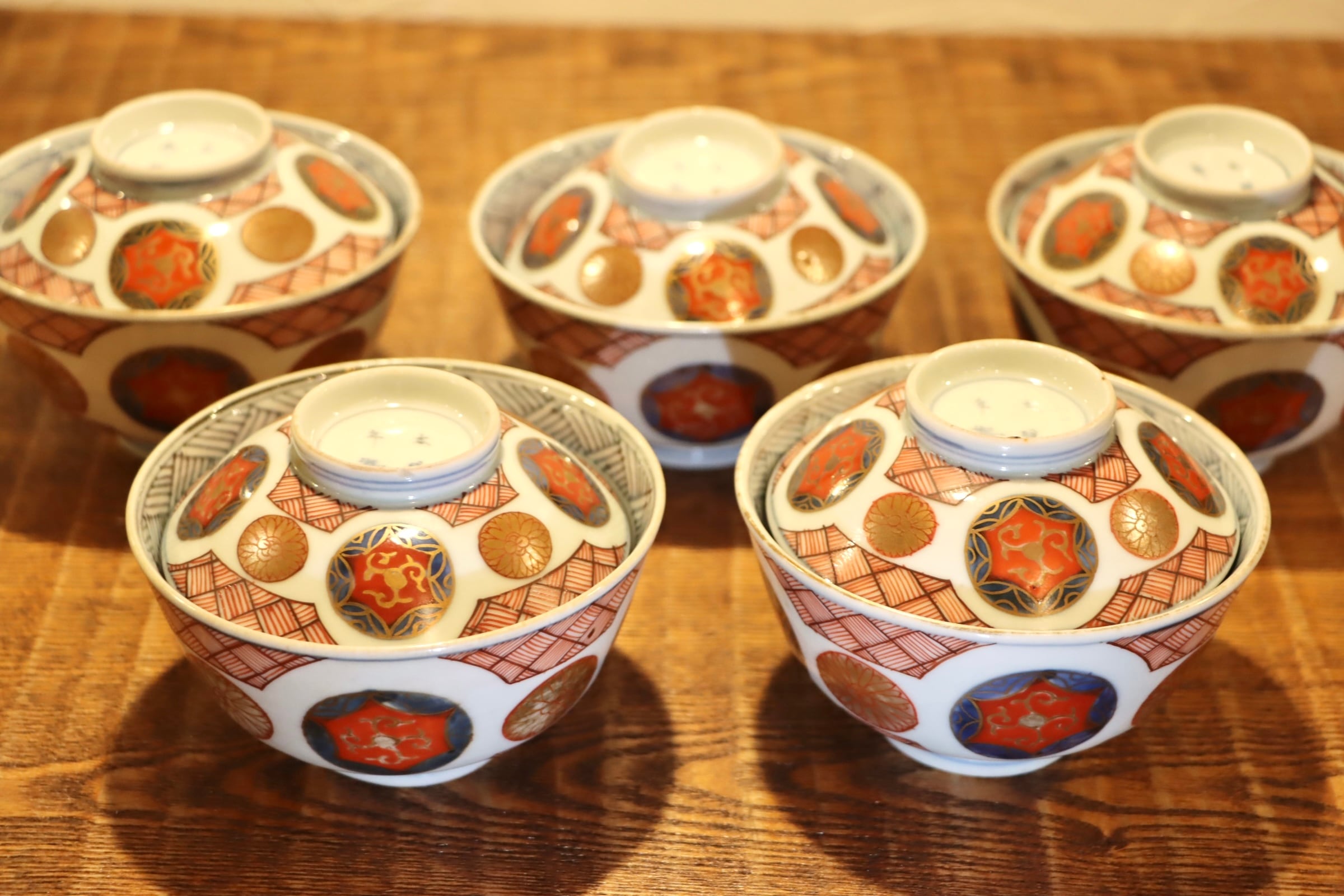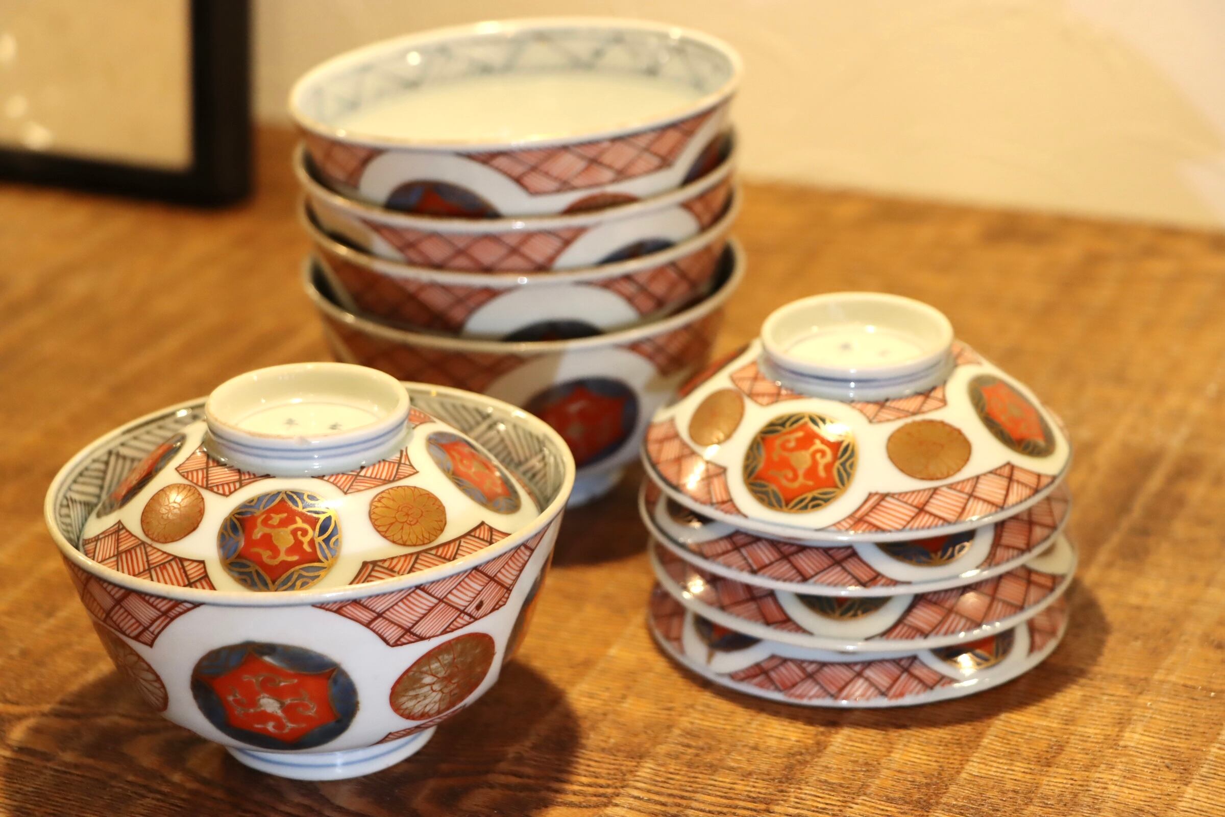 状態:一客、蓋の持ち手に小さなソゲがございます。その他、焼成時にできる鉄分やくっつき、経年による釉薬の薄れがございます。一枚一枚手描き、手作りの為、形や色、模様に多少の個体差があります。また、電子レンジや食器洗い乾燥機のご使用はお控えください。