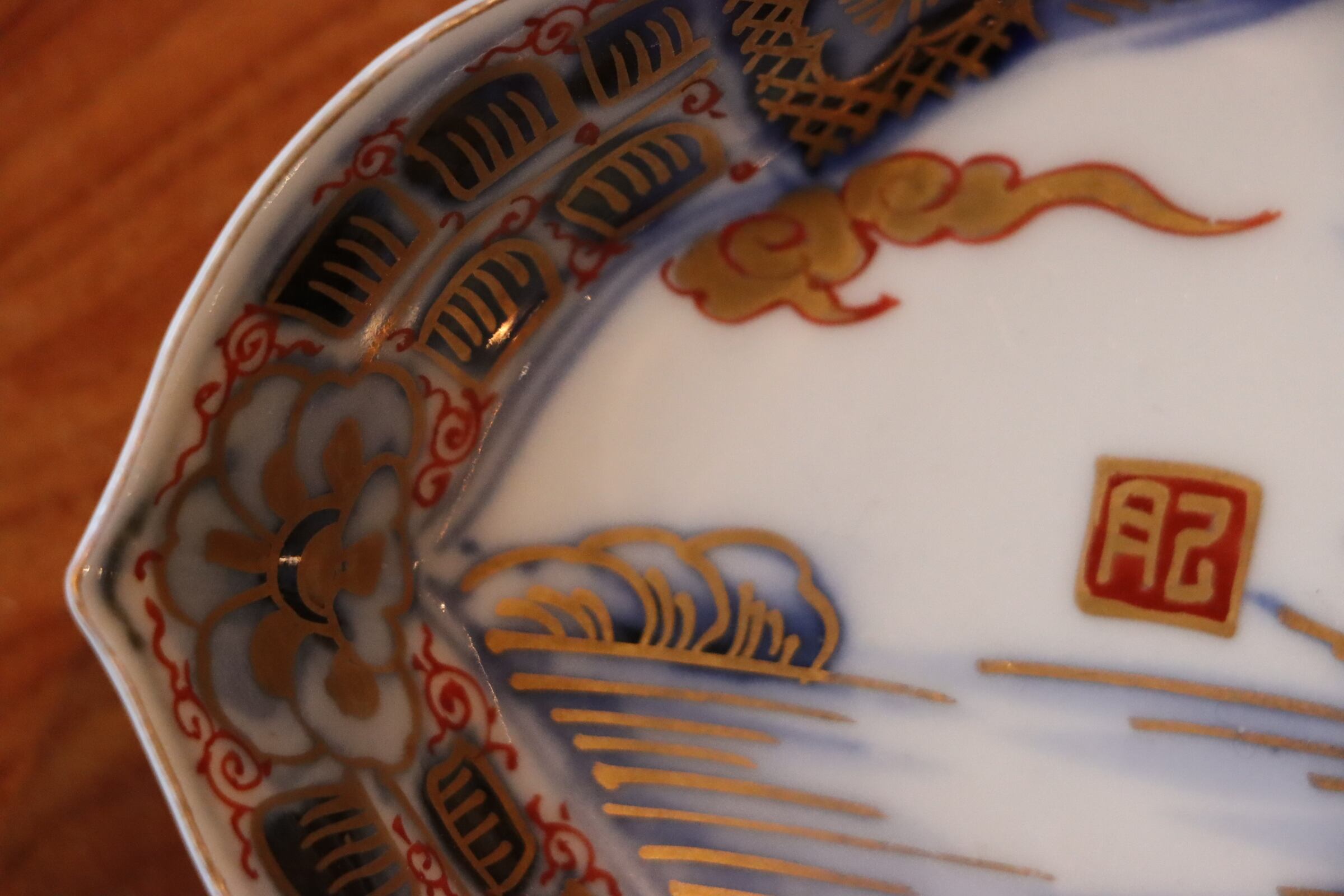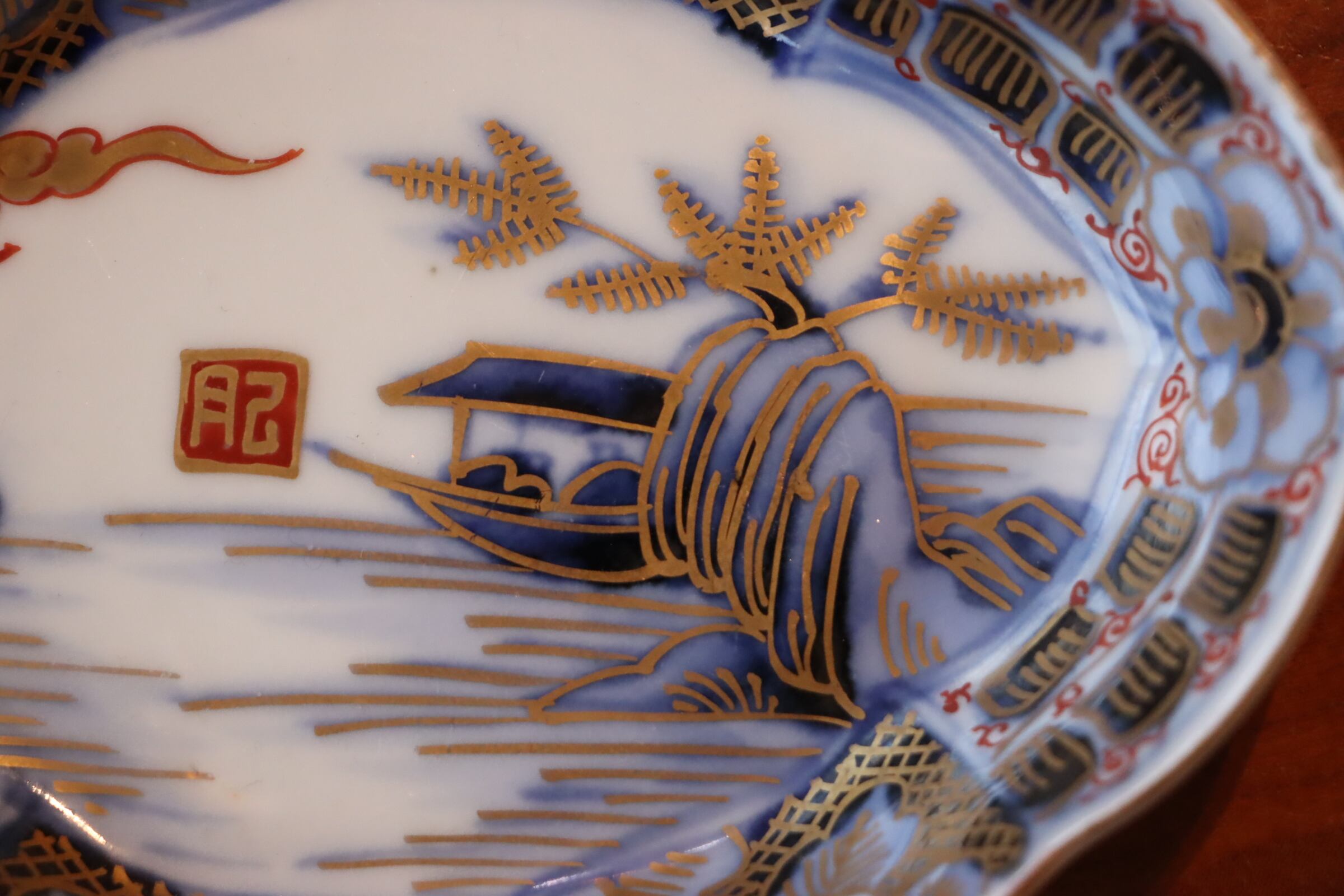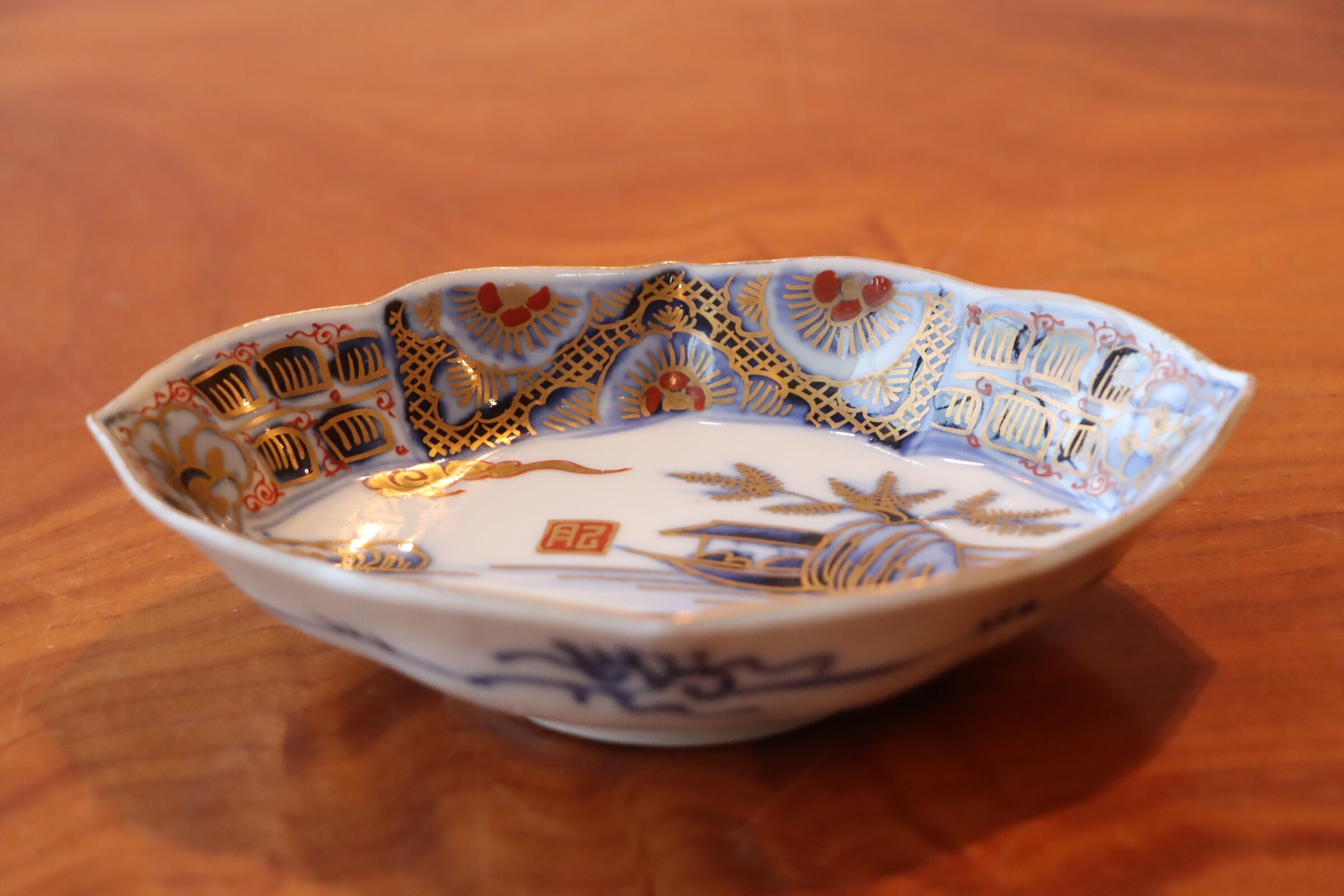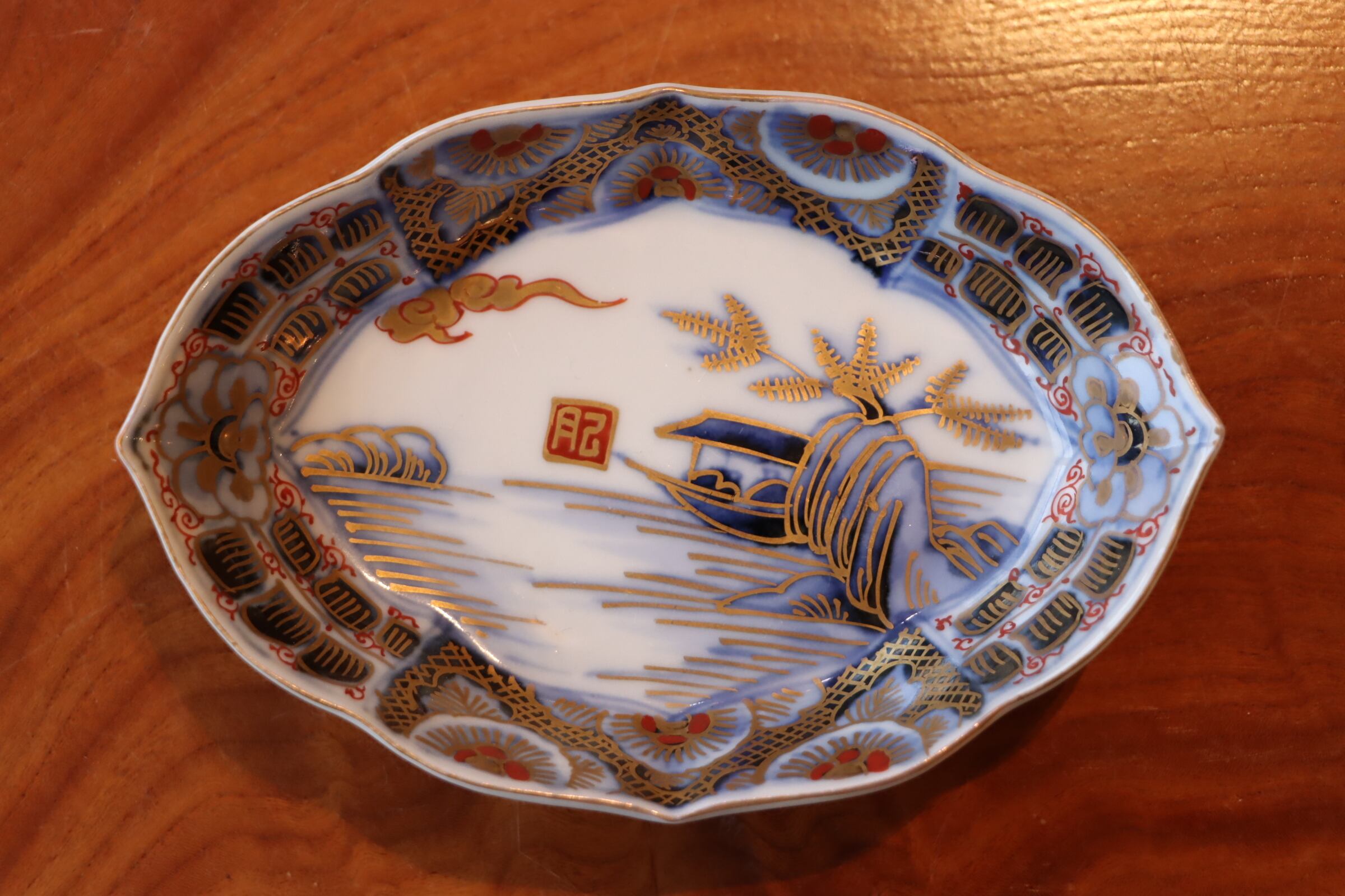 伊万里焼 色絵 舟人物文 変形皿