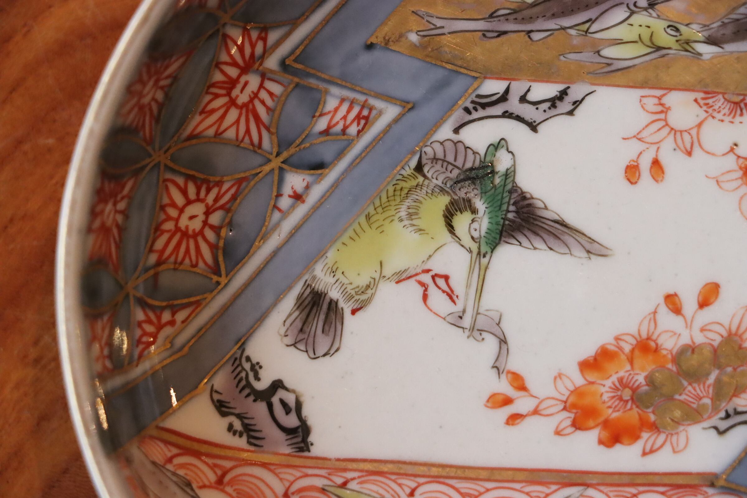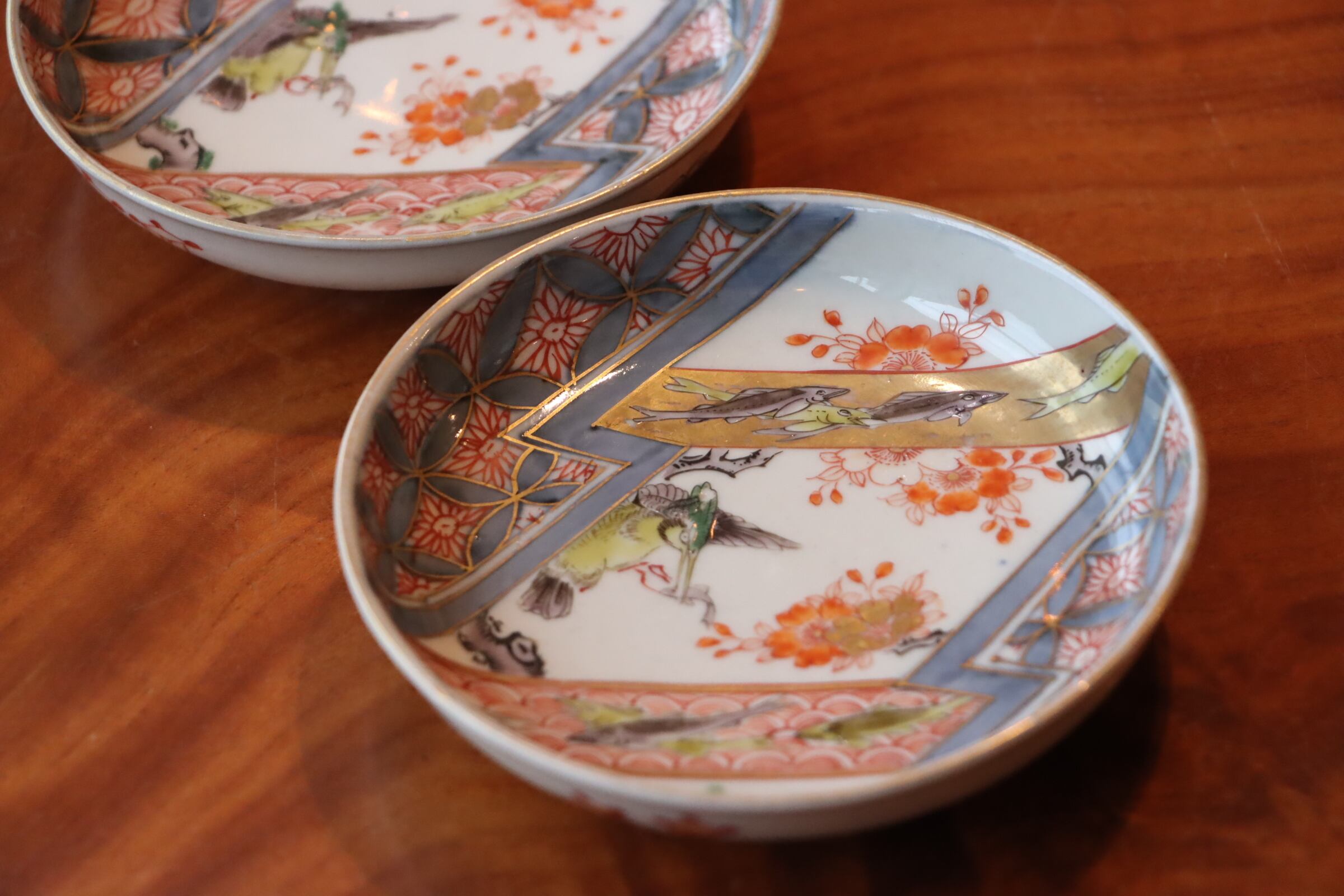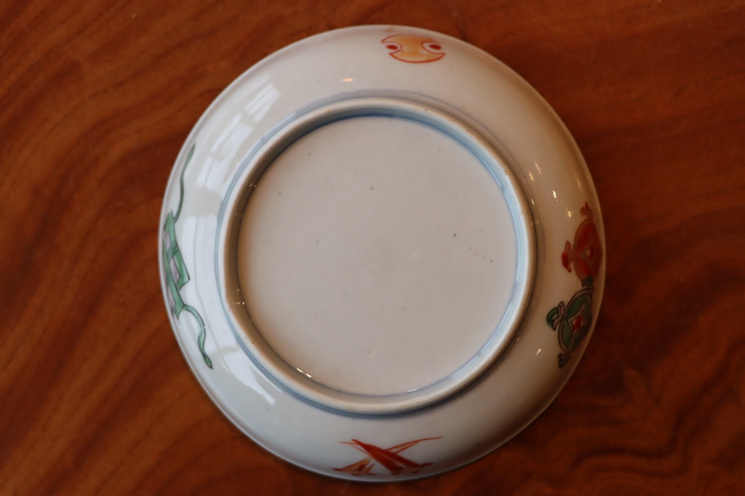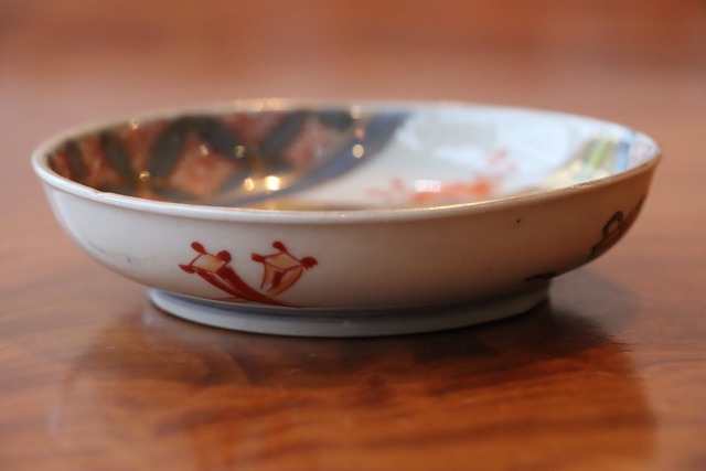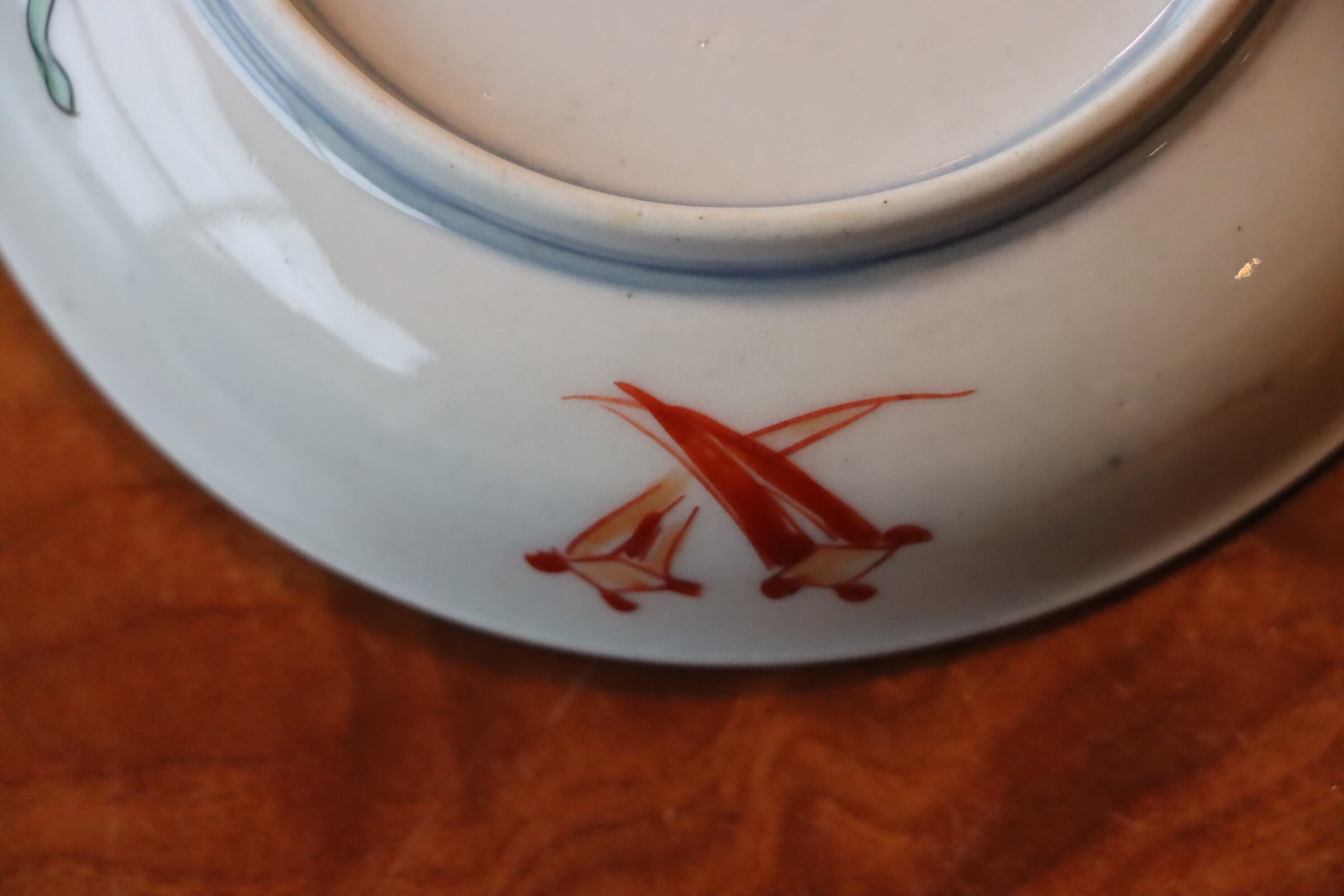 伊万里焼 色絵 翡翠(かわせみ)に魚 小皿