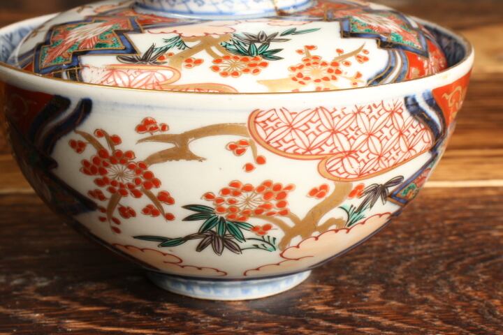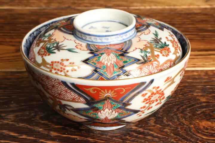 今回ご紹介する伊万里焼 色絵 竹梅文 蓋茶碗は、七宝繋ぎ、竹梅文を余白を活かしながら品よく描かれております✨