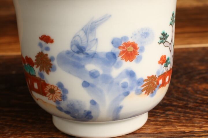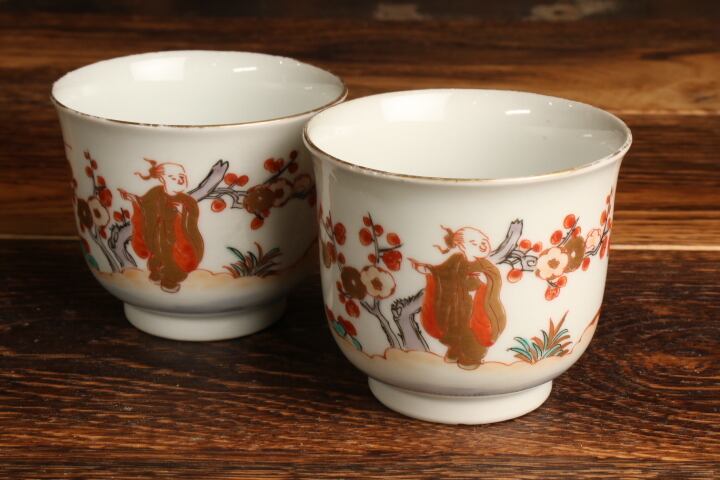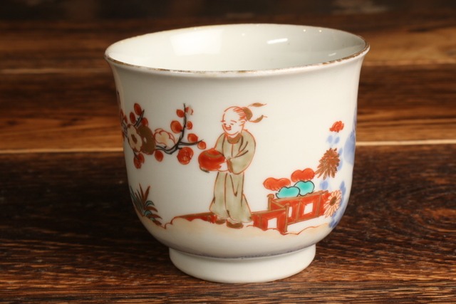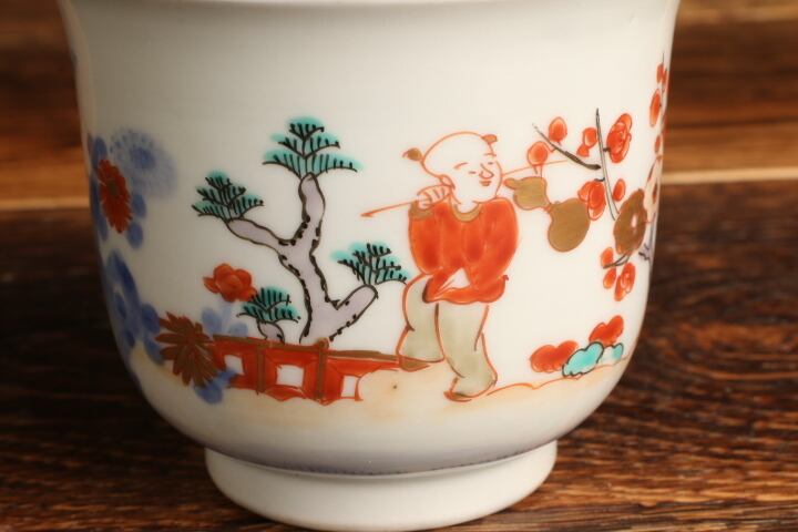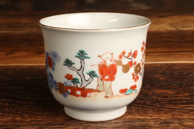 伊万里焼 色絵 人物松竹梅文 湯呑 通りもの