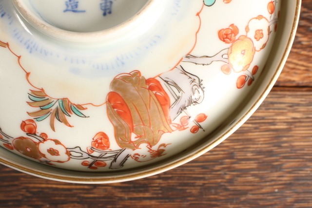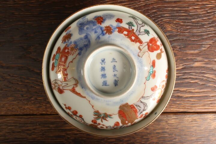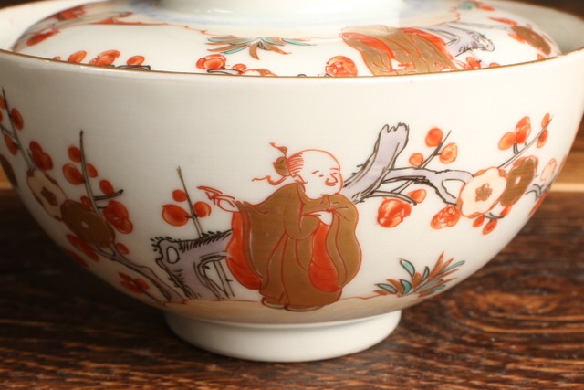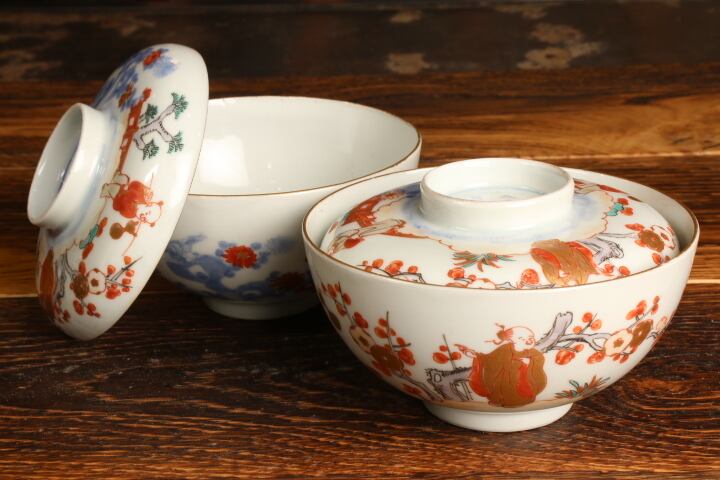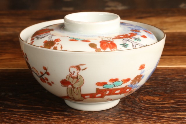 伊万里焼 色絵 人物松竹梅文 蓋茶碗 通りもの