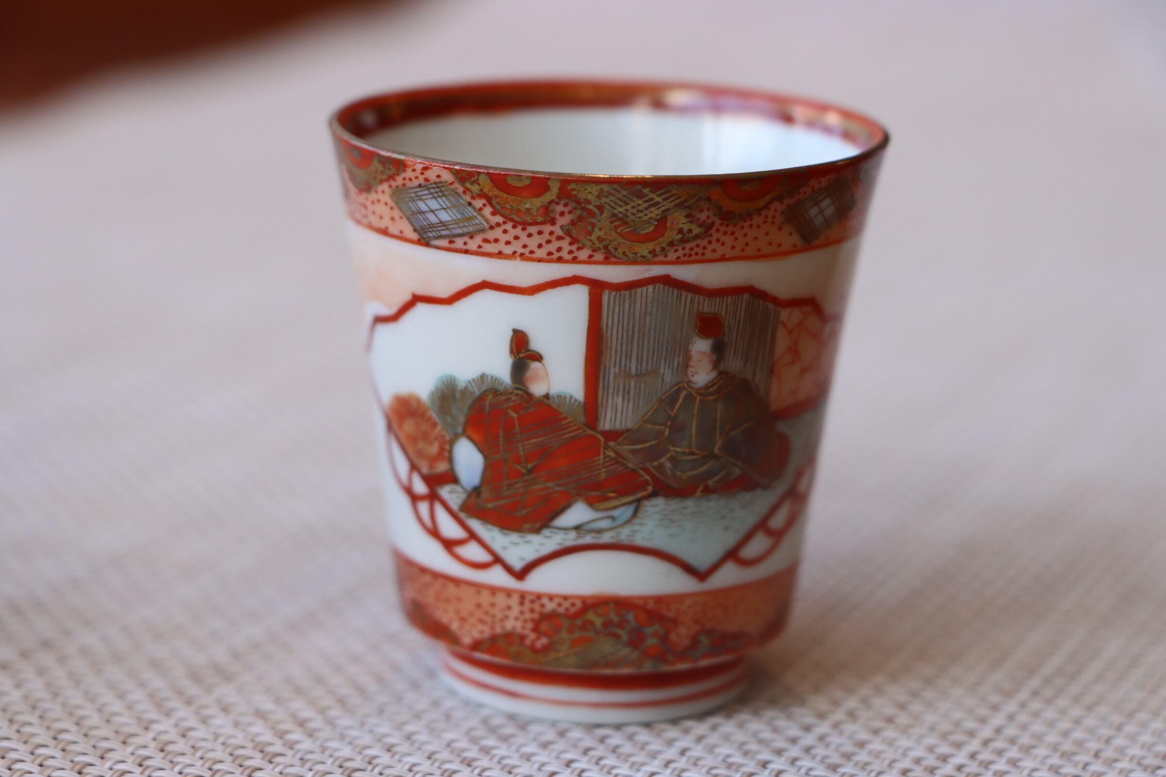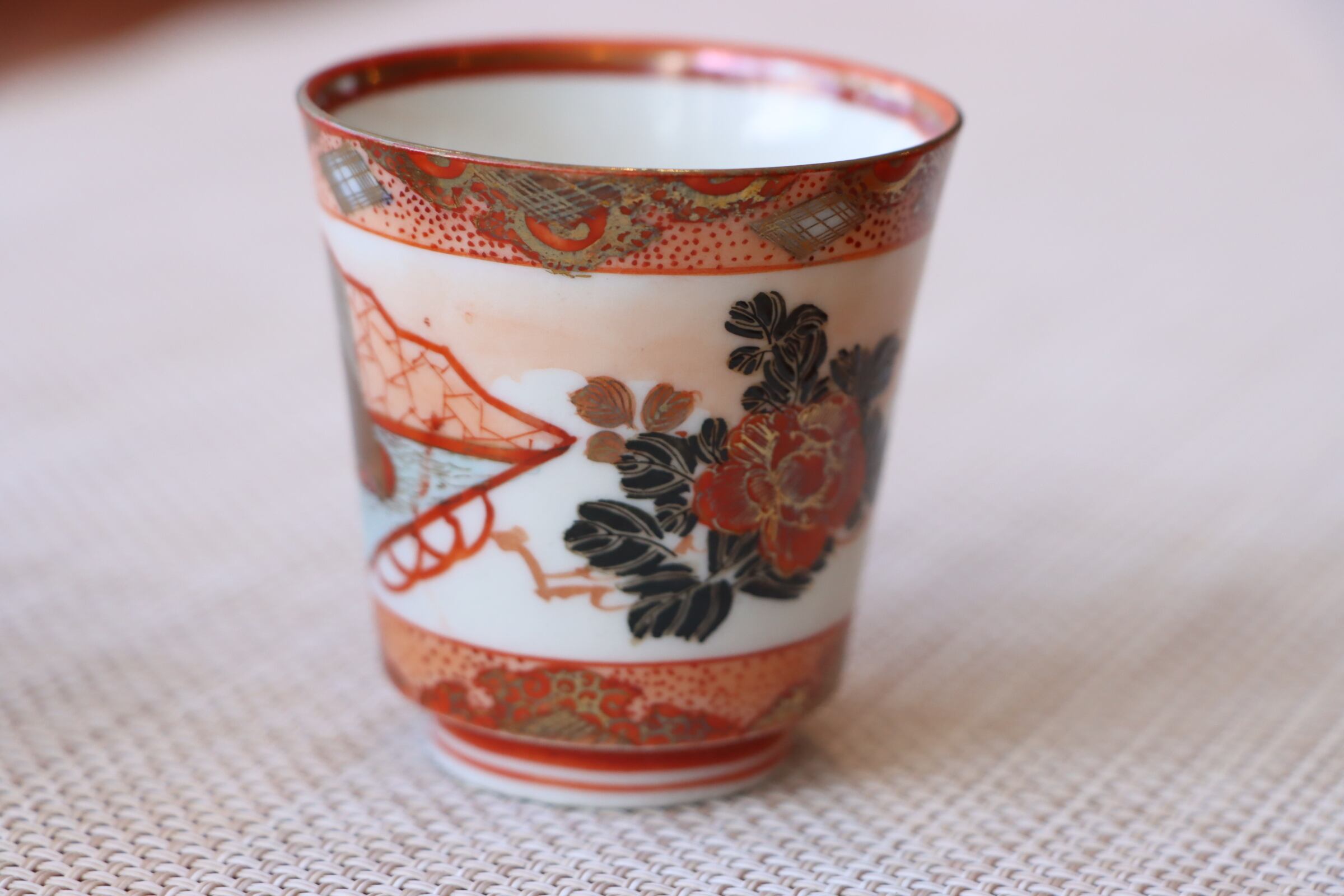 九谷焼 人物扇面花文 猪口