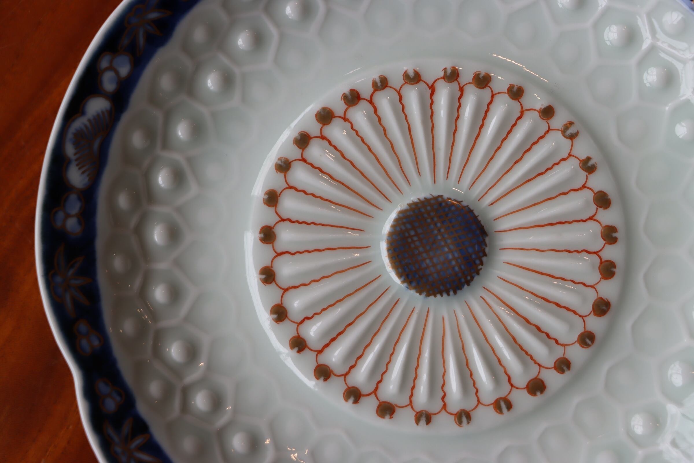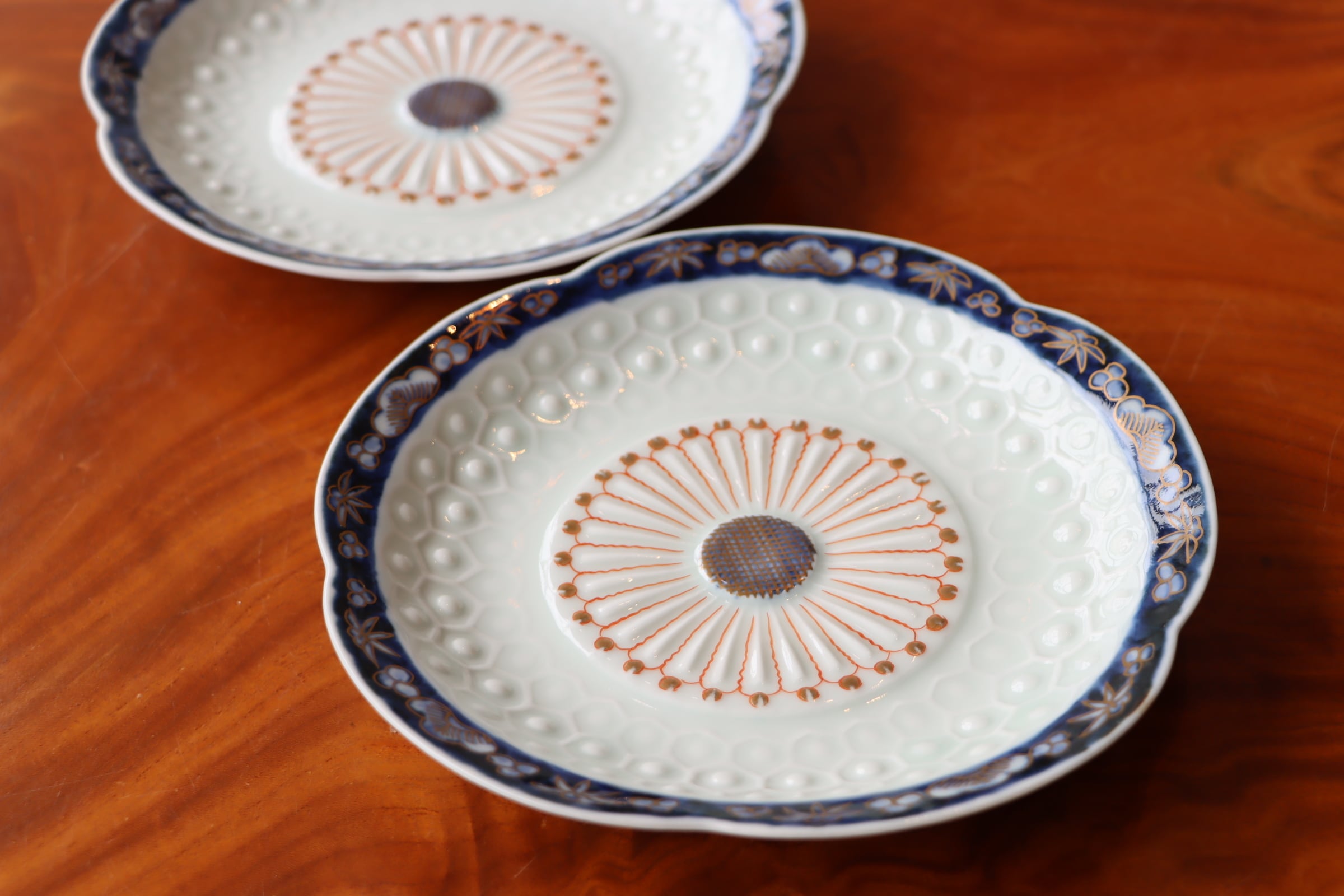 古伊万里 染付 亀甲文 輪花 中皿 六寸
