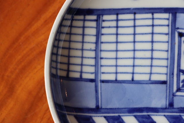 古伊万里 染付 邸内文 中皿 六寸