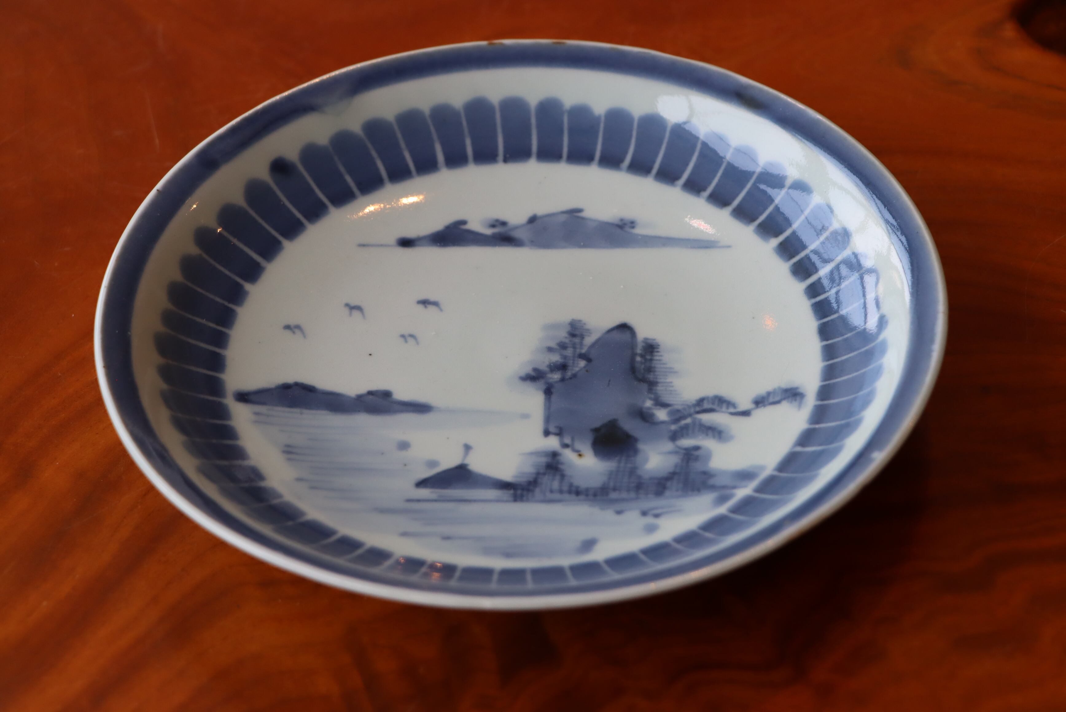 古伊万里 染付 楼閣山水文 中皿 七寸