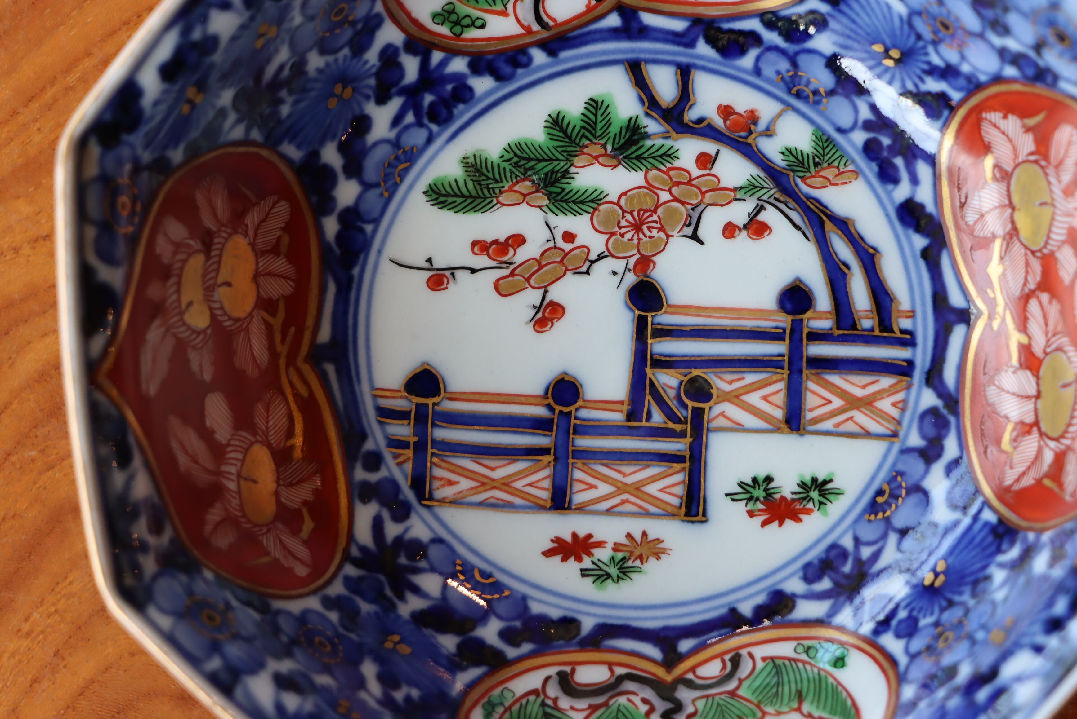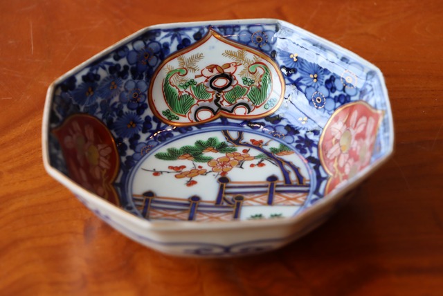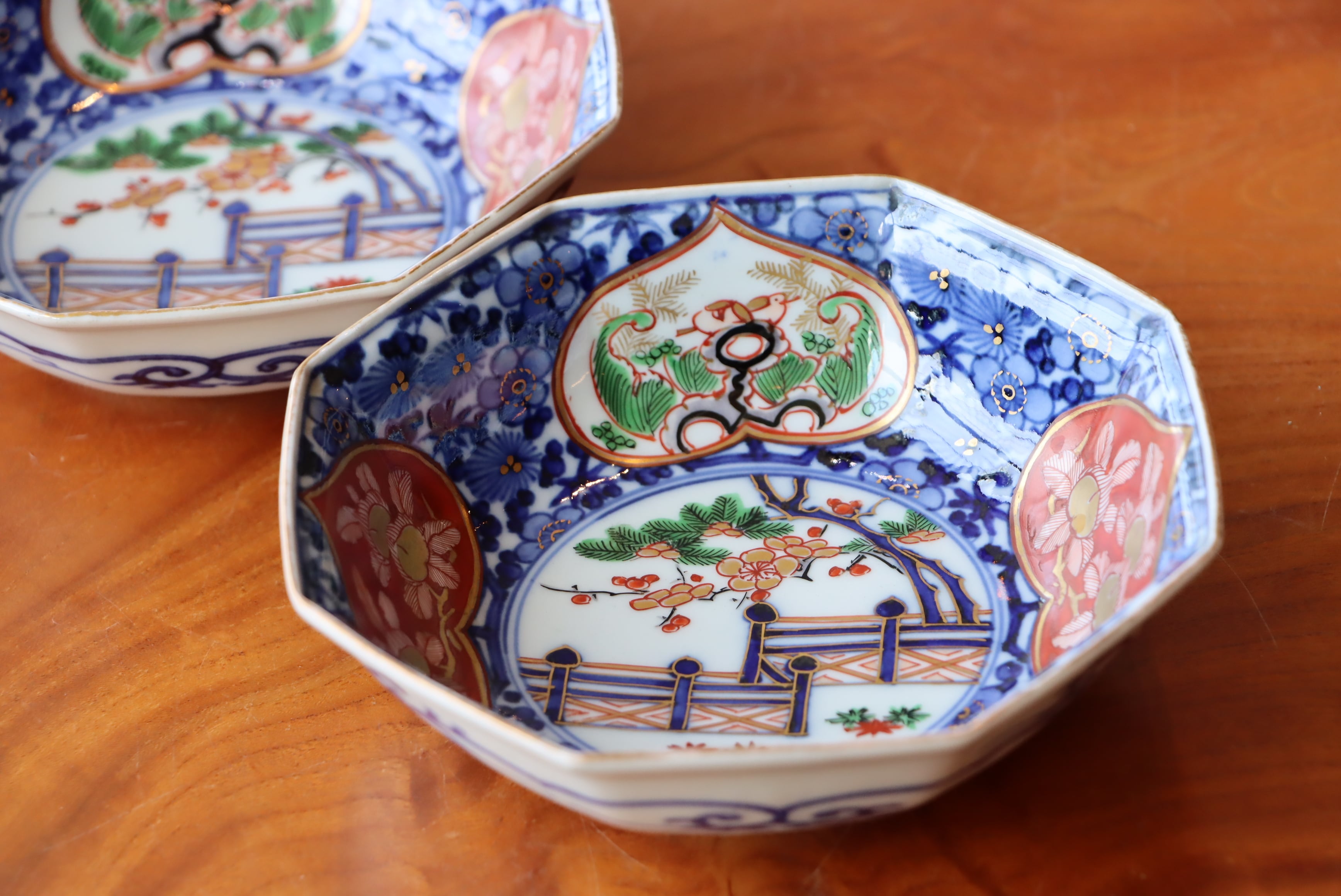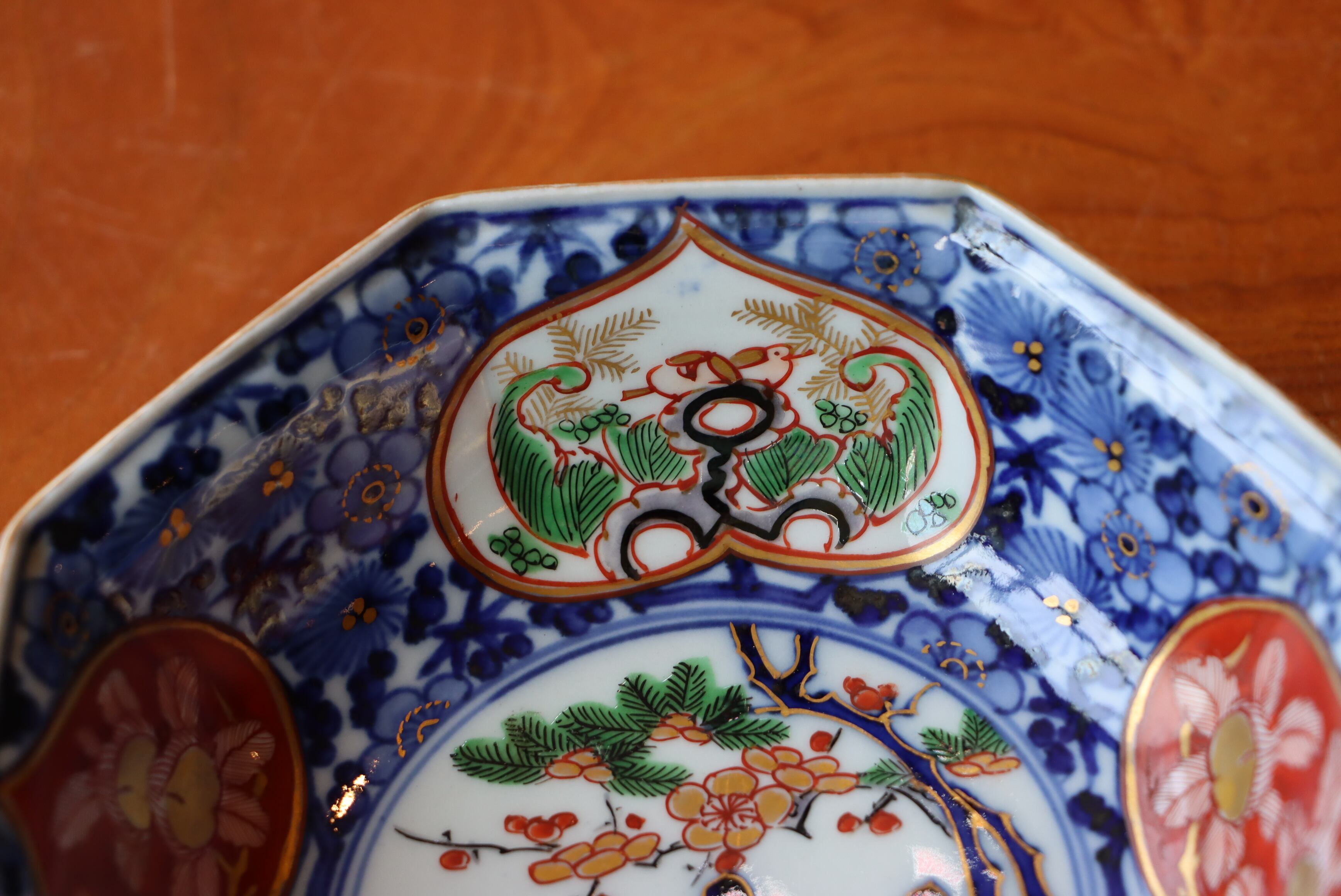 大聖寺伊万里 色絵 鳥松竹梅文 八角形 膾皿