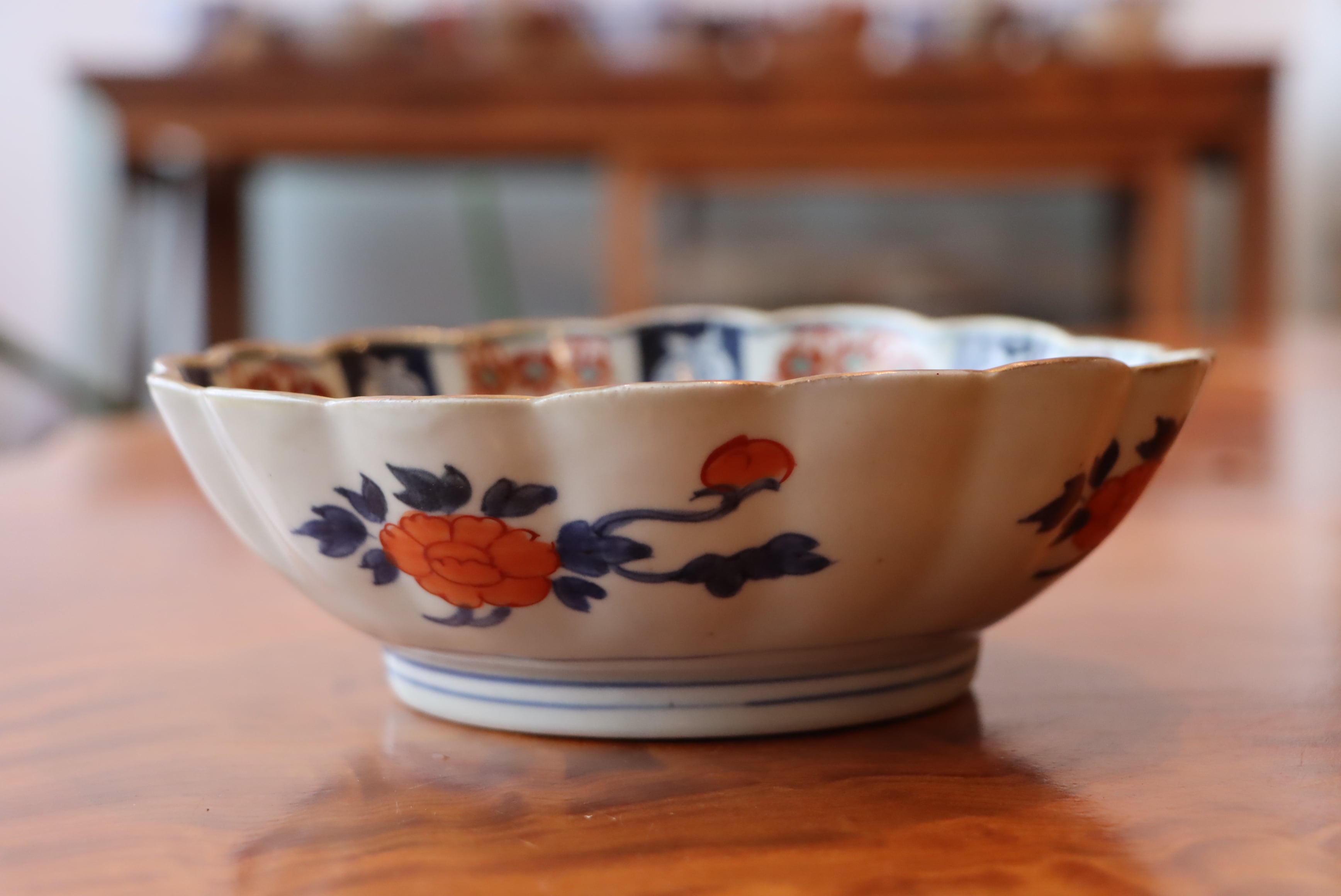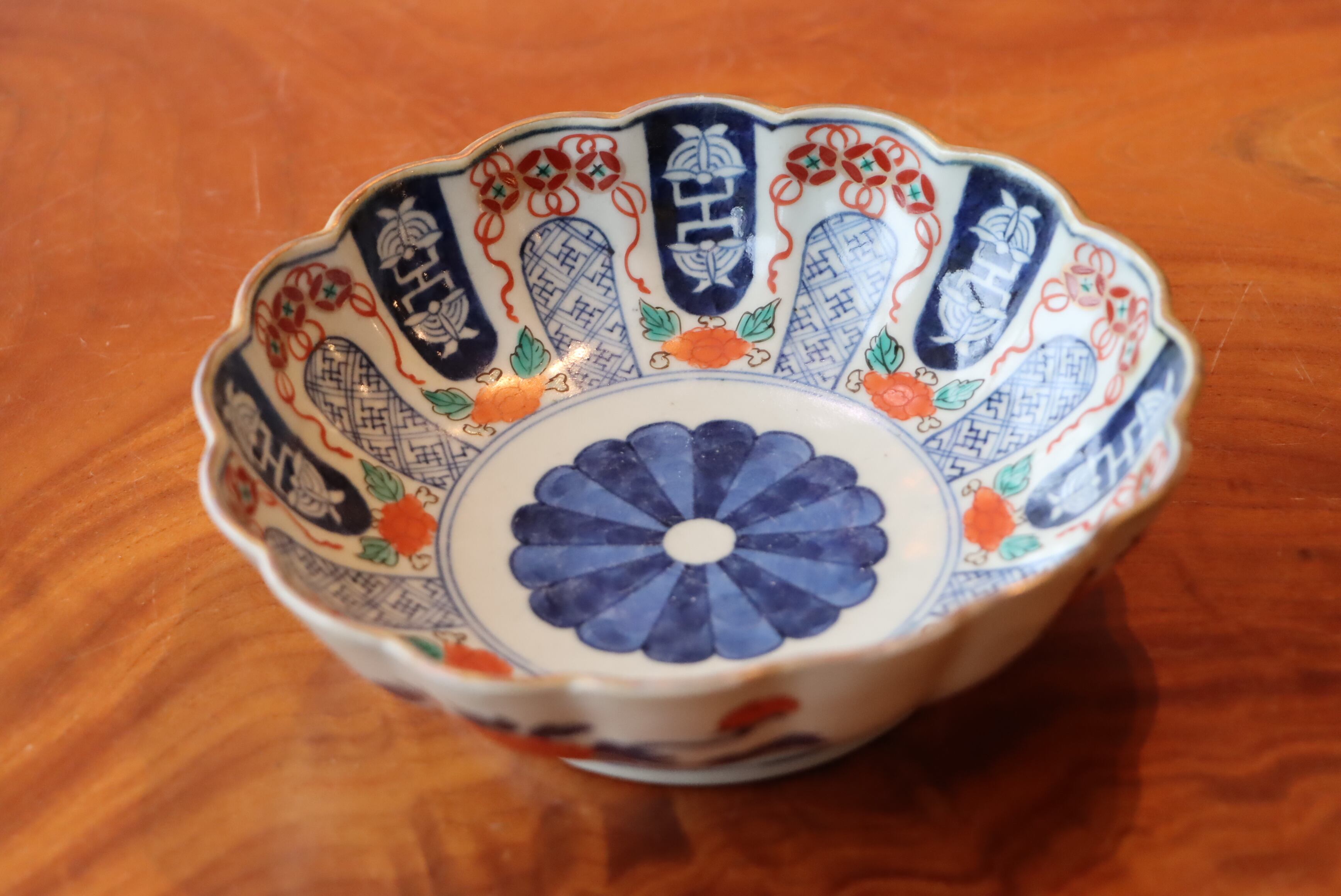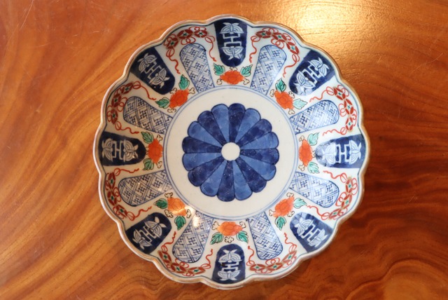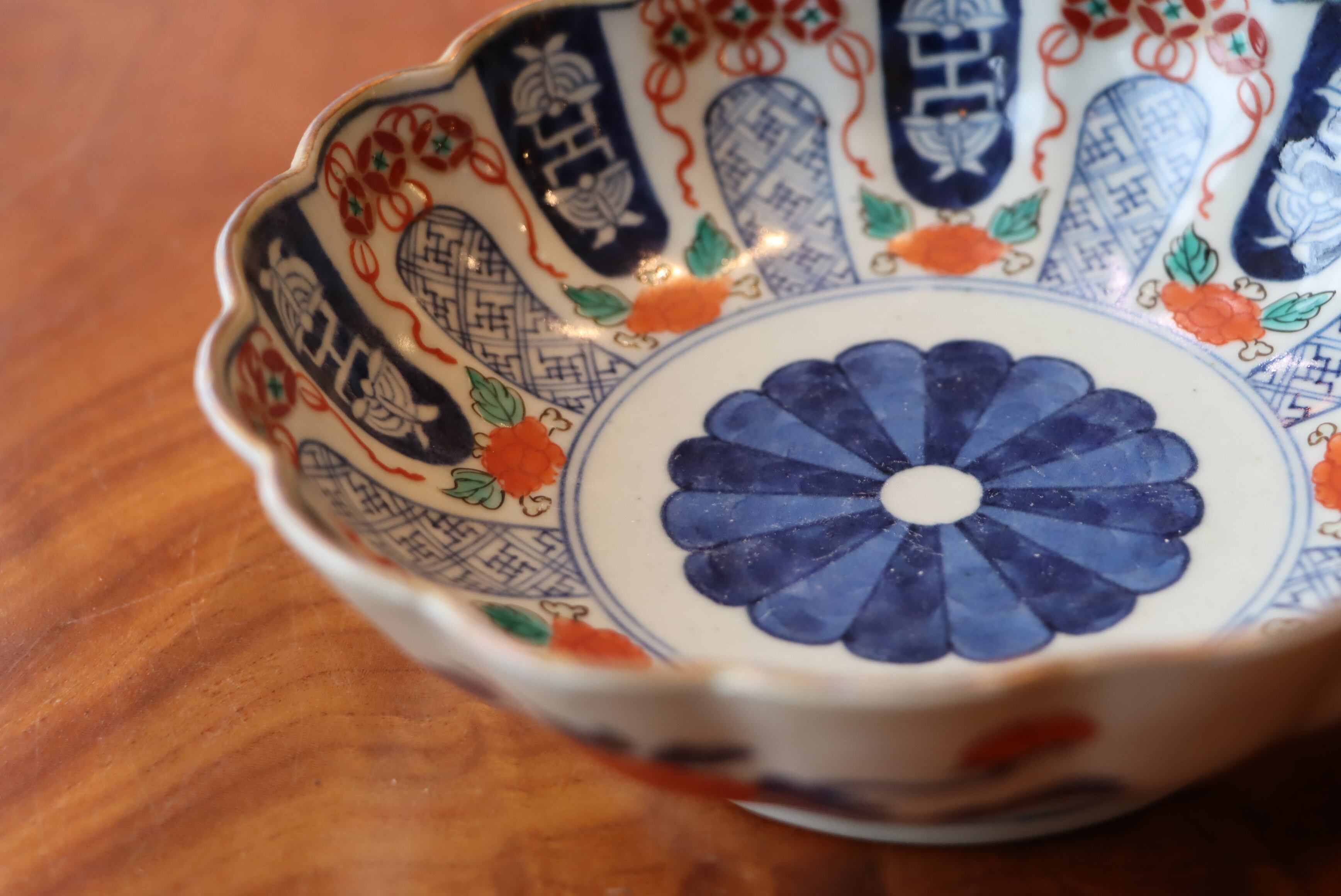伊万里焼 色絵 花蝶文 輪花 膾皿