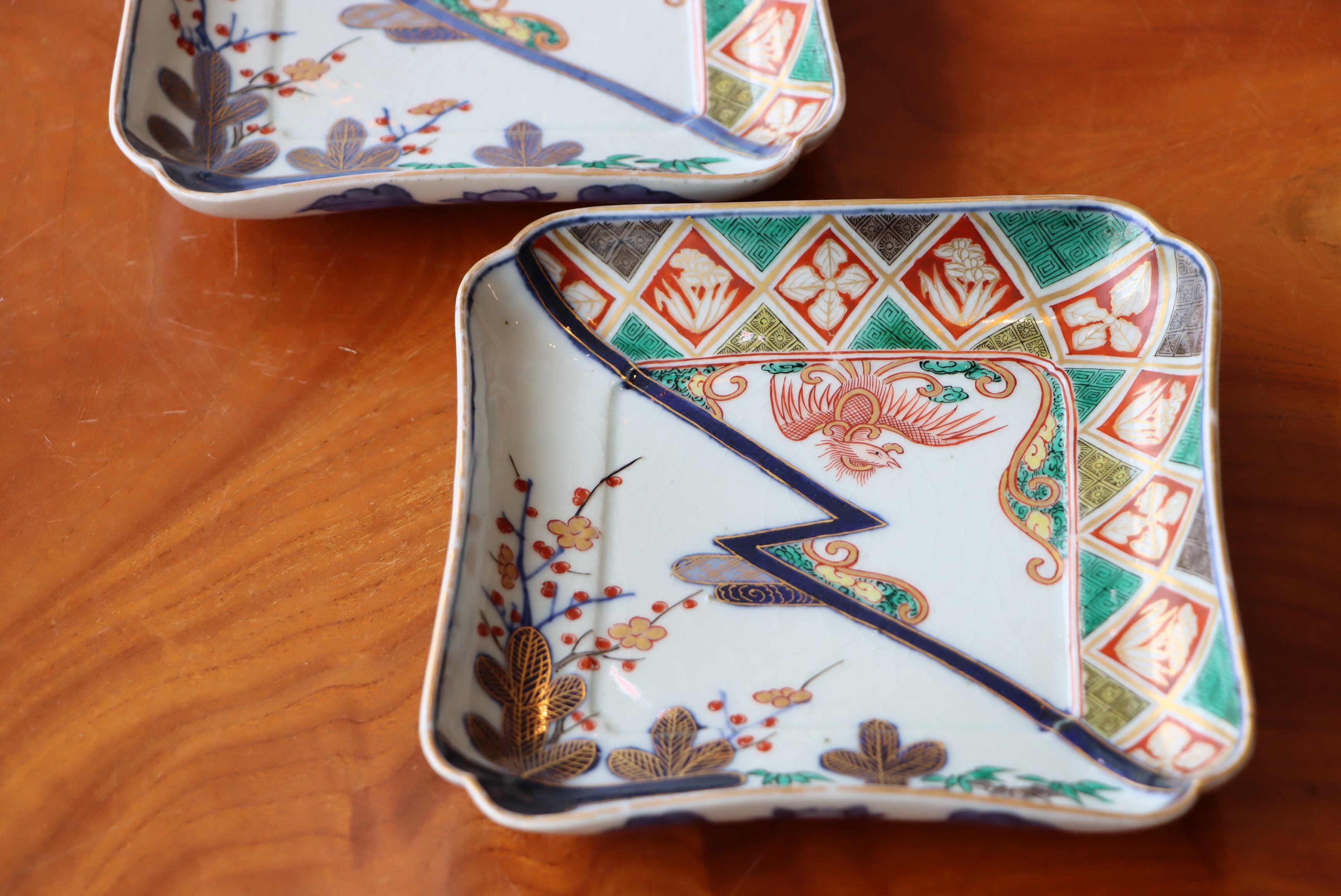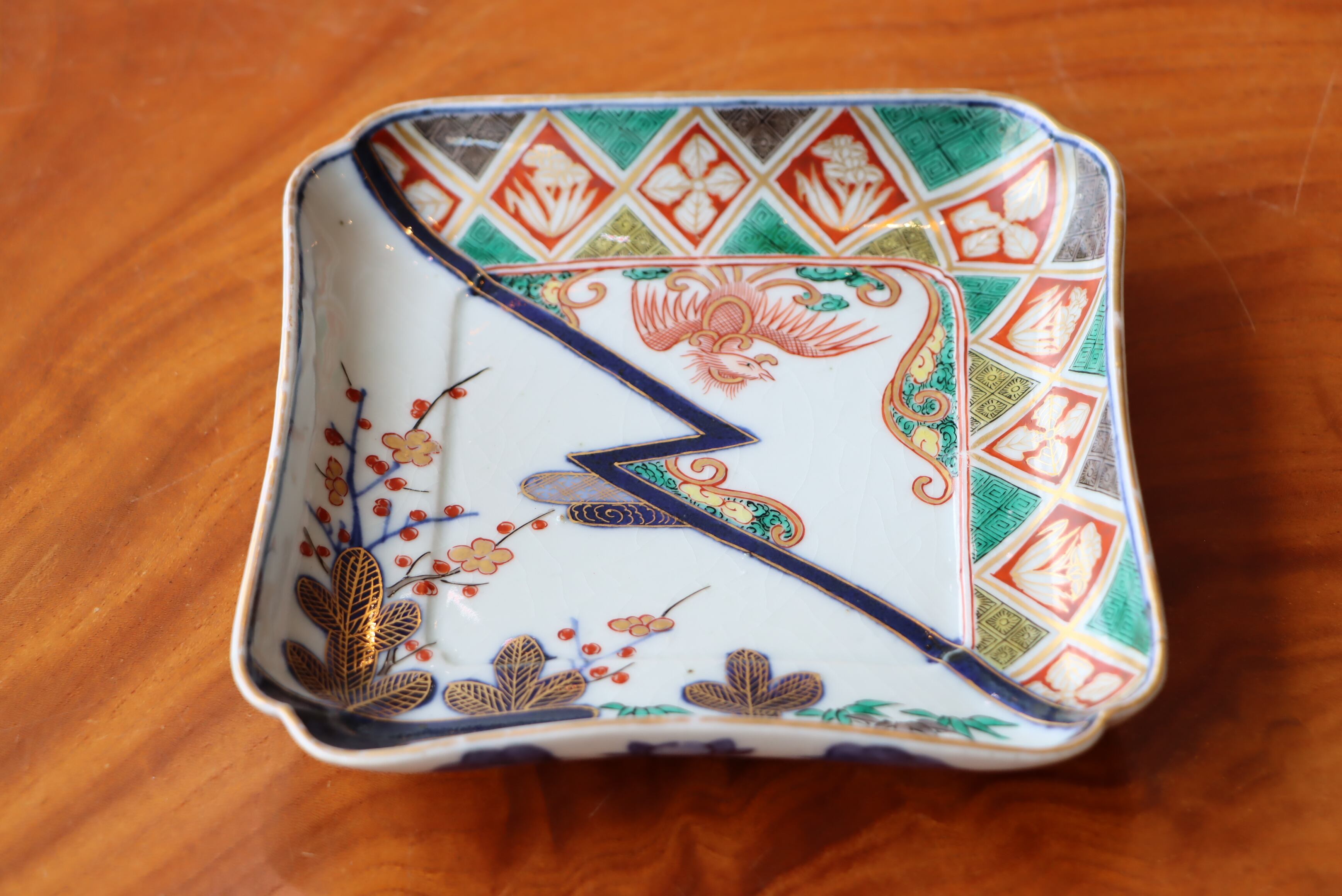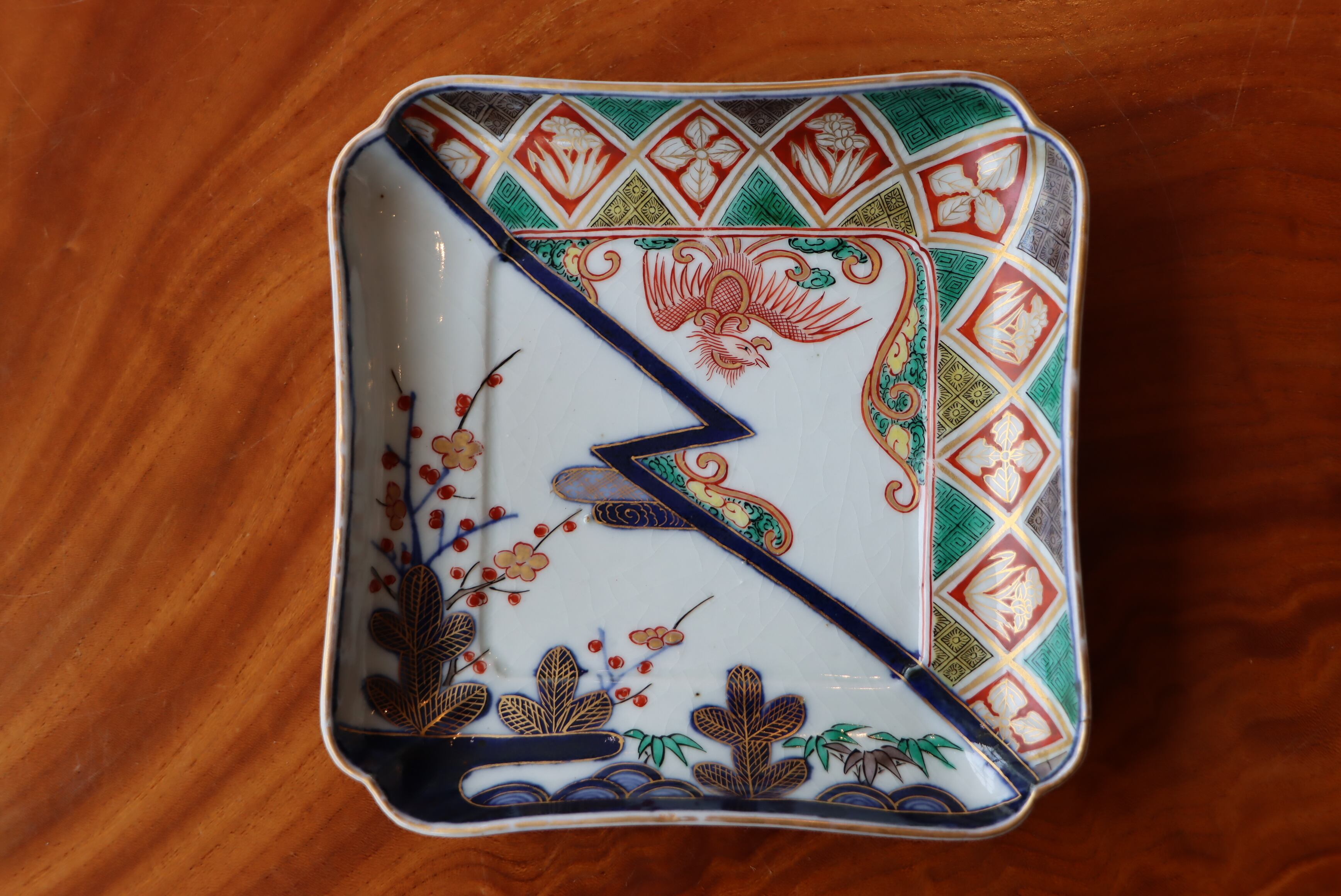 大聖寺伊万里 色絵 鳳凰文 四方皿