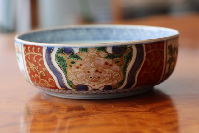 伊万里焼 色絵 獅子牡丹文 膾皿