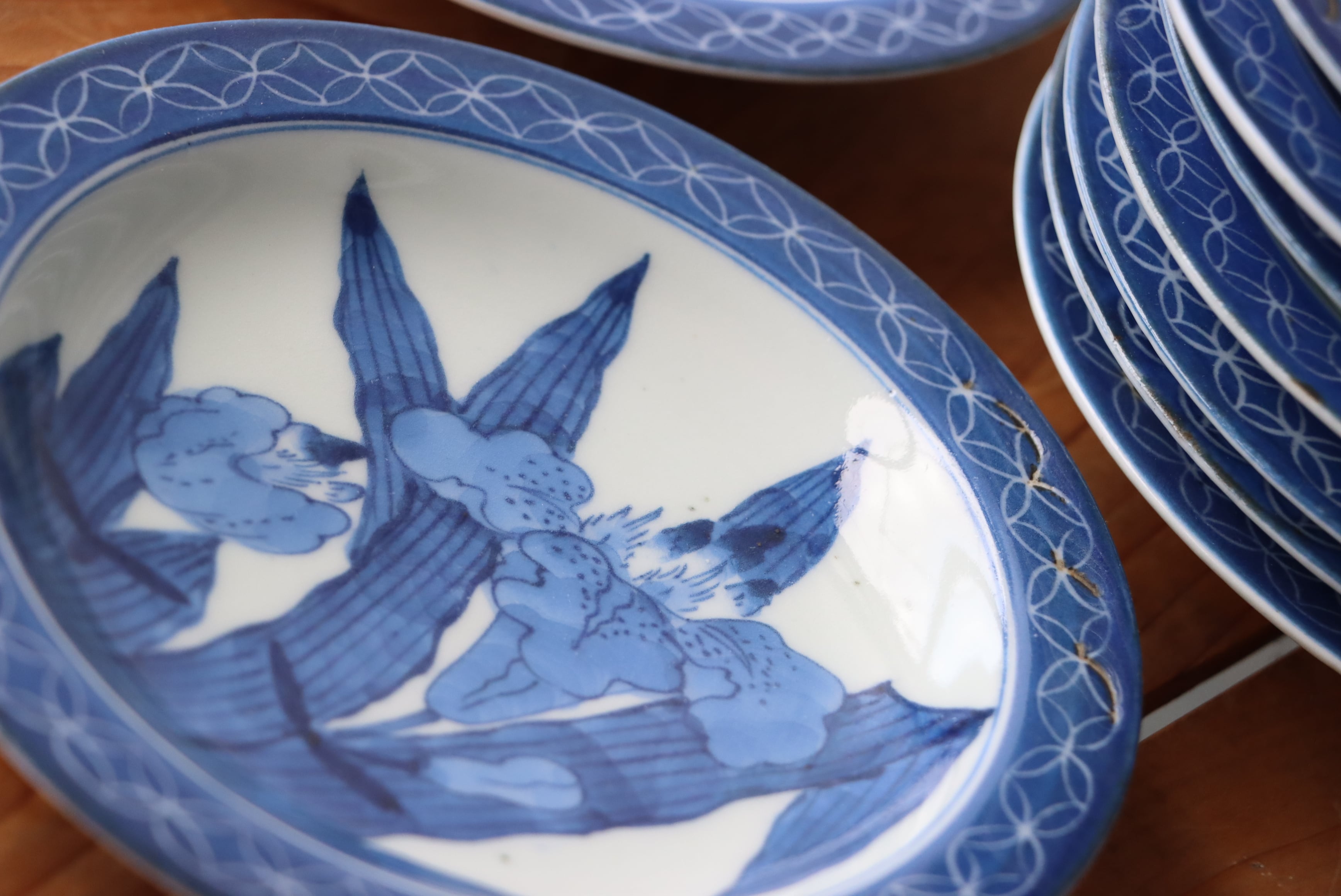 染付の濃淡だけで表された力強い葉と花が、とても粋です✨