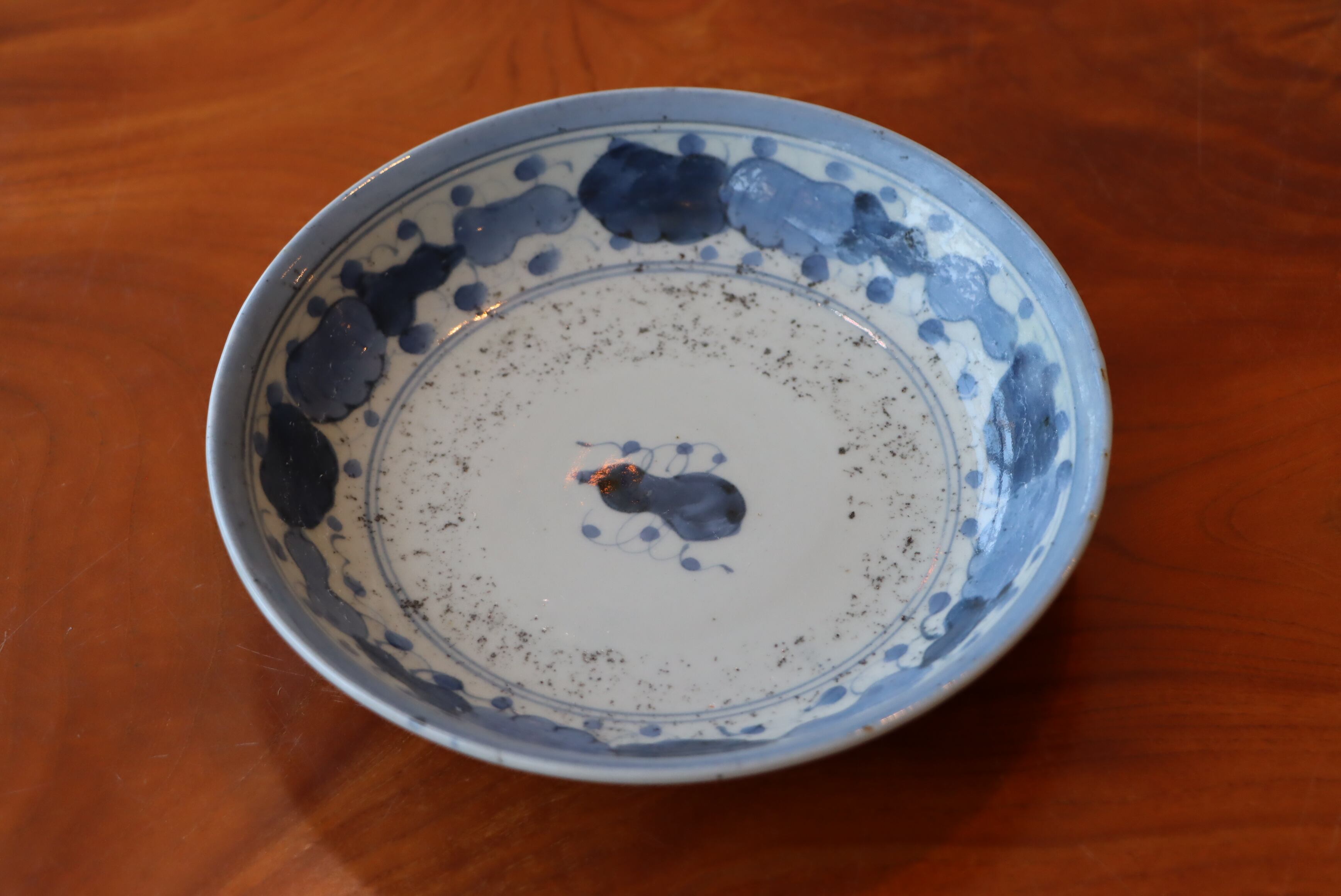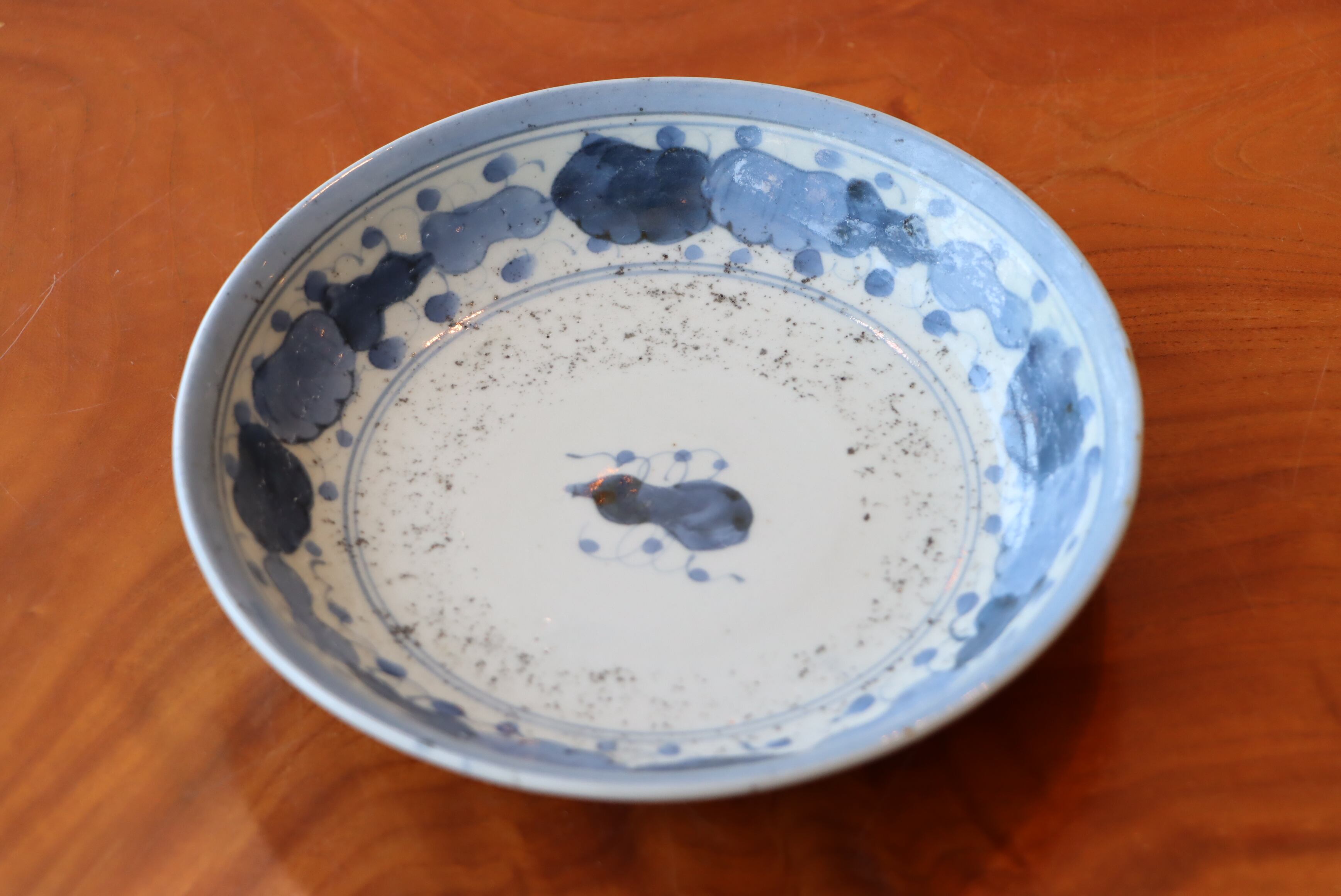 六寸 中皿 古伊万里 染付 瓢箪文 A