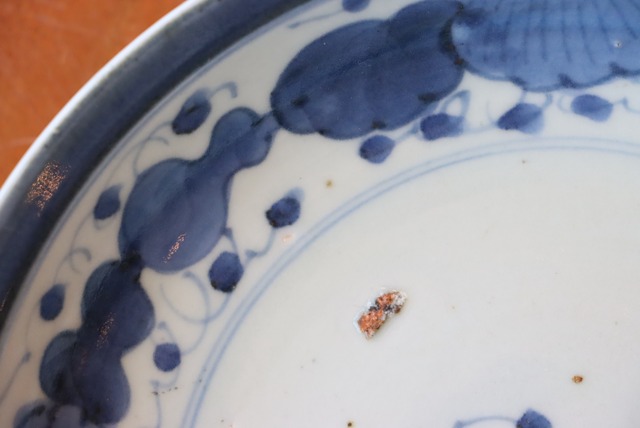 六寸 中皿 古伊万里 染付 瓢箪文 C