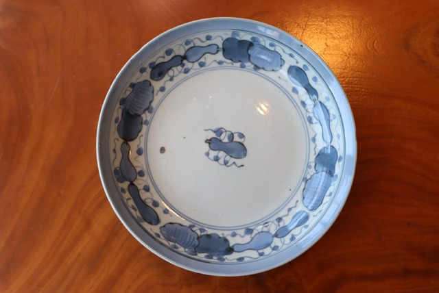 六寸 中皿 古伊万里 染付 瓢箪文 E