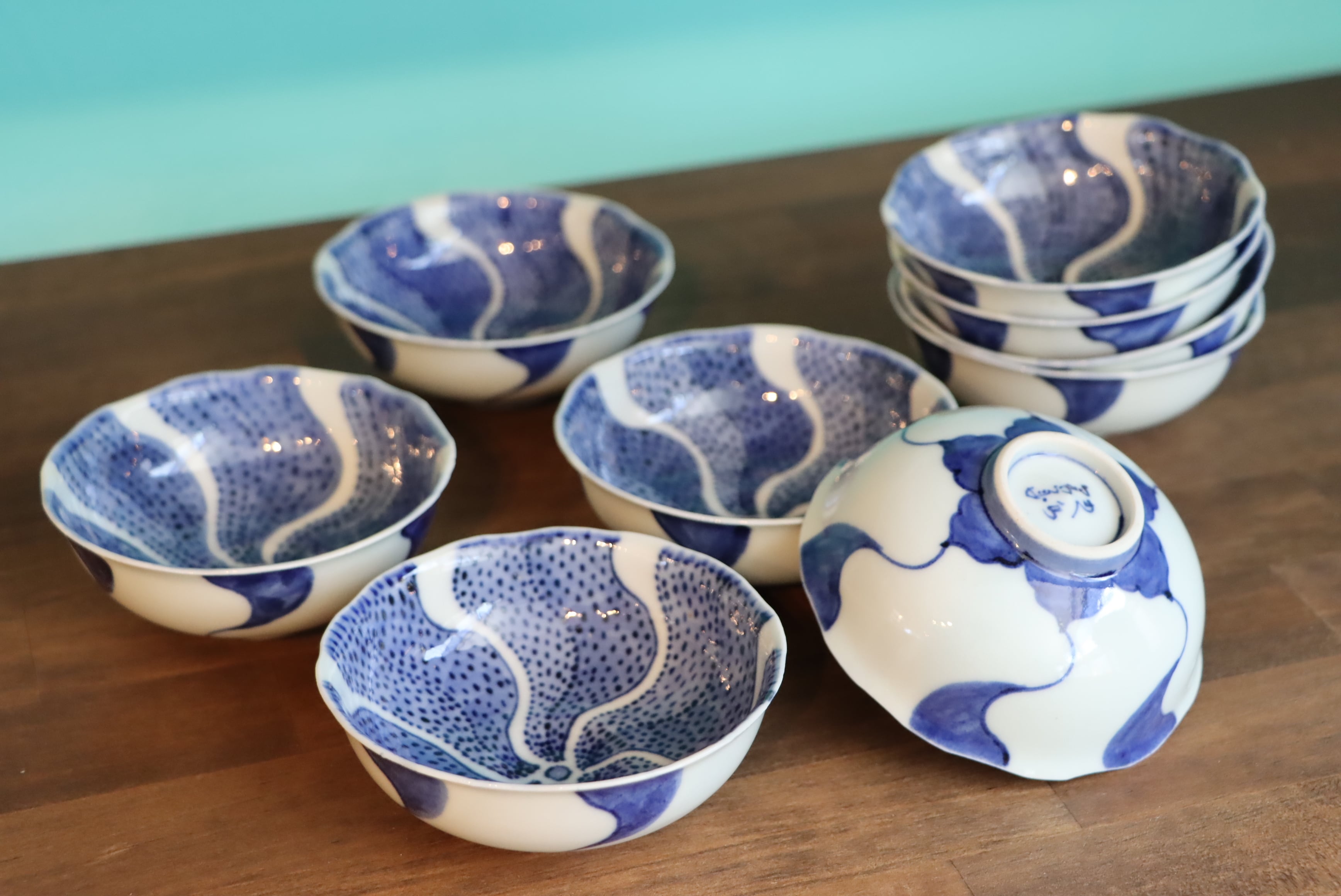状態:焼成時に窯の中でできる鉄分、くっつき、かまきず、経年による釉薬の薄れがございます。また、一枚一枚手描き、手作りですので器のサイズ(ミリ)、色味、描かれている文様の大きさなど個体差があり、ひとつとして同じものはございません。そういった時代感、個性をご理解いただき、楽しんでくだされば幸いです。電子レンジや食器洗い乾燥機のご使用はお控えください。