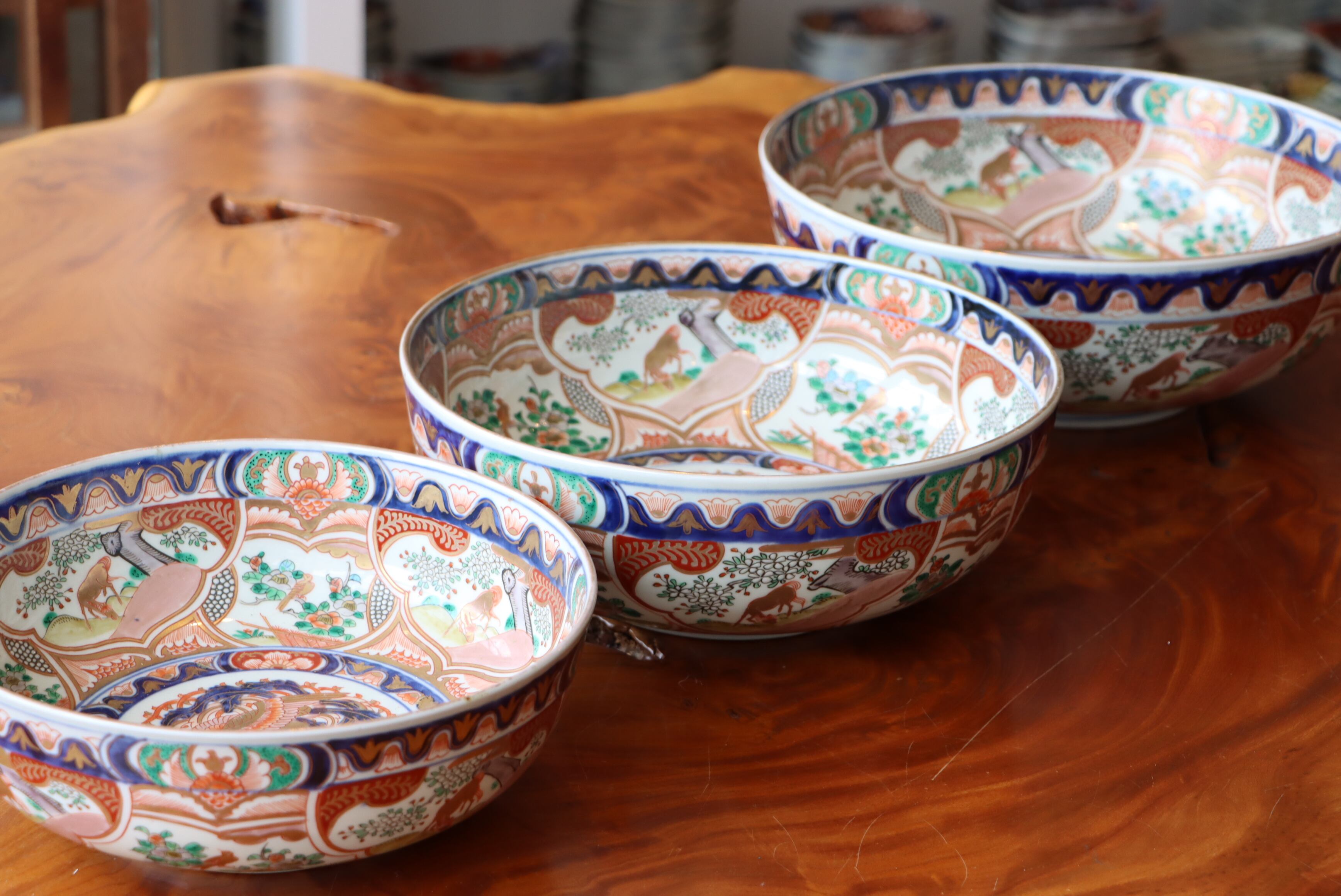 状態:焼成時に窯の中でできる鉄分、くっつき、かまきず、経年による釉薬の薄れがございます。また、一枚一枚手描き、手作りですので器のサイズ(ミリ)、色味、描かれている文様の大きさなど個体差があり、ひとつとして同じものはございません。そういった時代感、個性をご理解いただき、楽しんでくだされば幸いです。電子レンジや食器洗い乾燥機のご使用はお控えください。