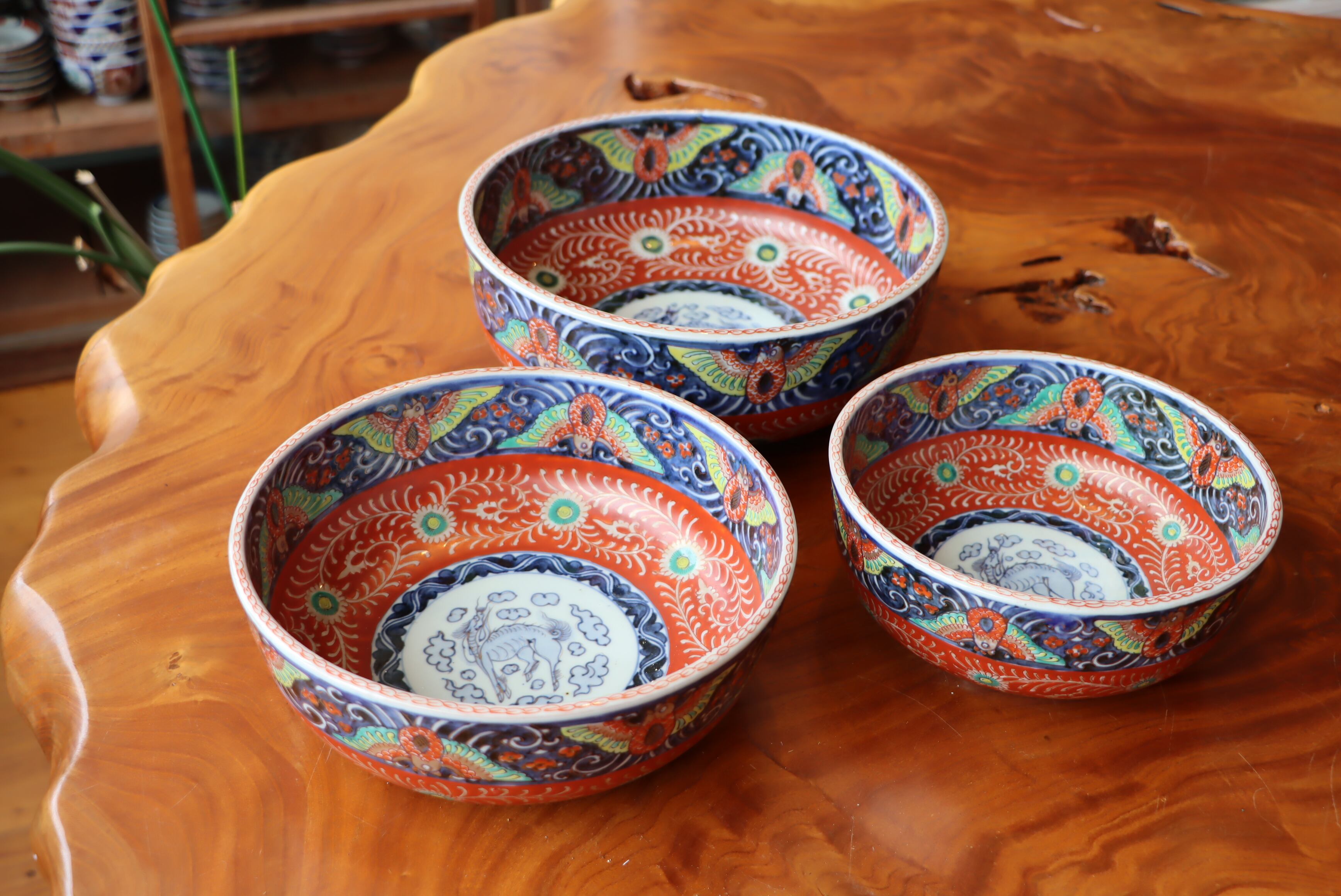 状態:焼成時に窯の中でできる鉄分、くっつき、かまきず、経年による釉薬の薄れがございます。また、一枚一枚手描き、手作りですので器のサイズ(ミリ)、色味、描かれている文様の大きさなど個体差があり、ひとつとして同じものはございません。そういった時代感、個性をご理解いただき、楽しんでくだされば幸いです。電子レンジや食器洗い乾燥機のご使用はお控えください。