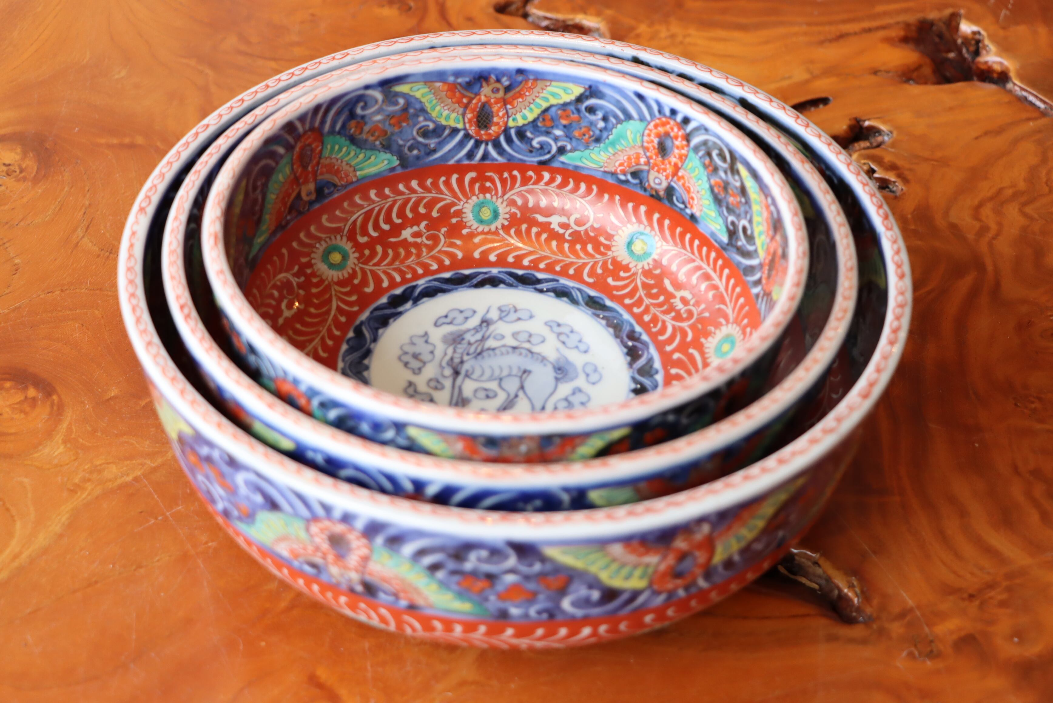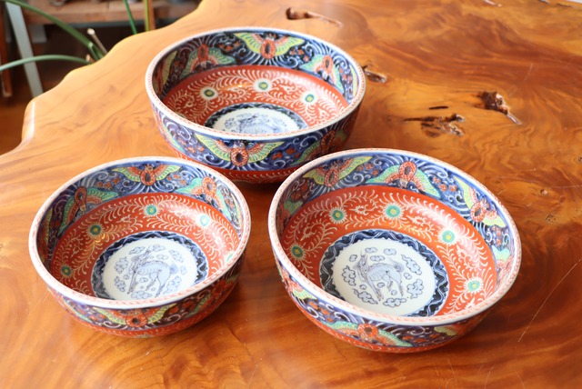 状態:焼成時に窯の中でできる鉄分、くっつき、かまきず、経年による釉薬の薄れがございます。また、一枚一枚手描き、手作りですので器のサイズ(ミリ)、色味、描かれている文様の大きさなど個体差があり、ひとつとして同じものはございません。そういった時代感、個性をご理解いただき、楽しんでくだされば幸いです。電子レンジや食器洗い乾燥機のご使用はお控えください。