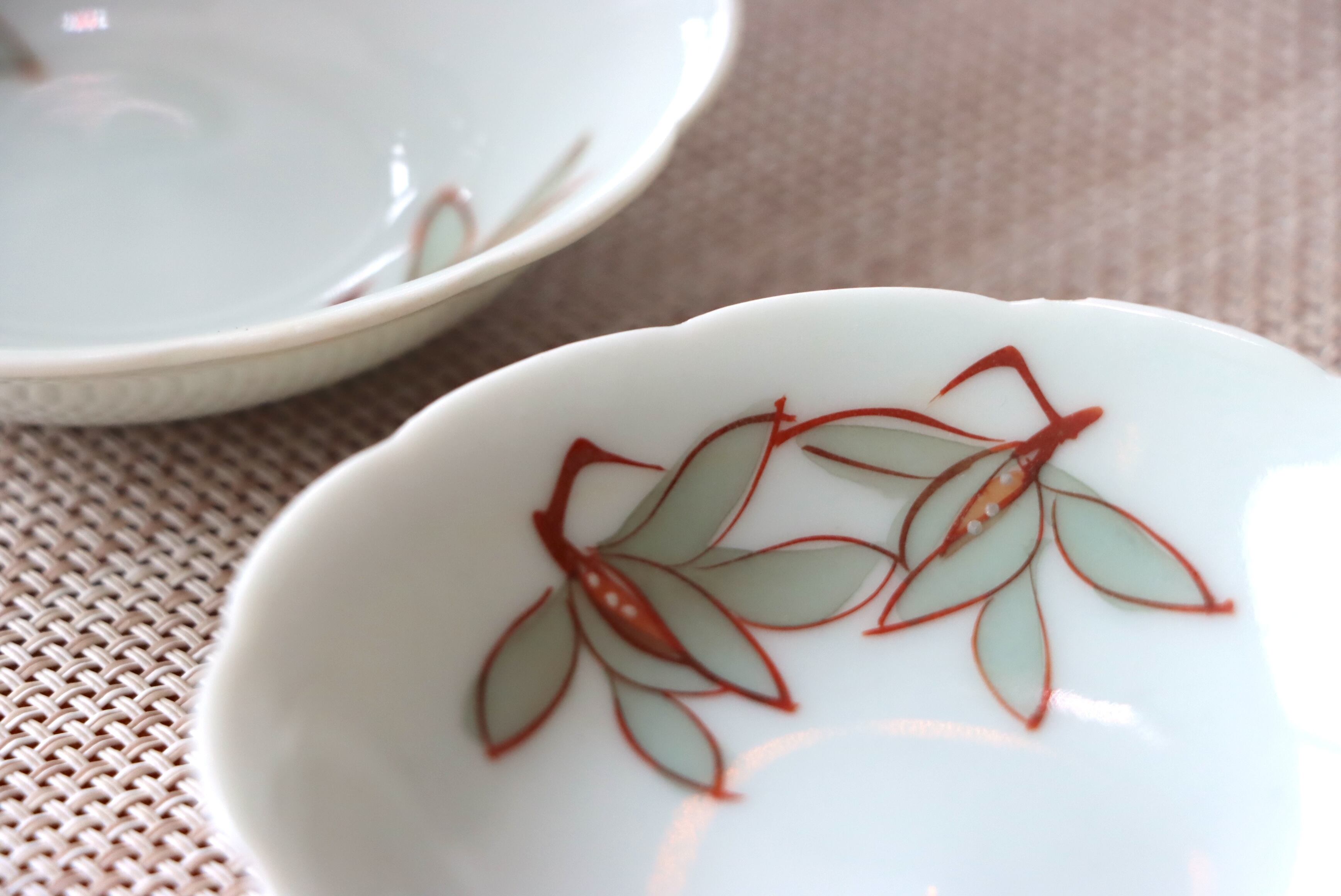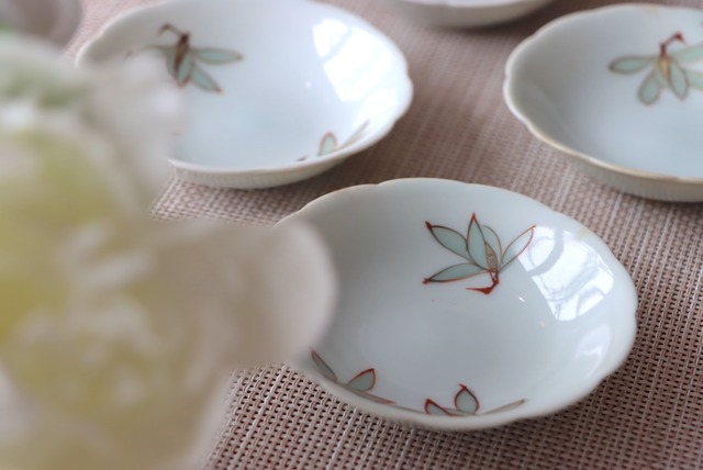 縁のやさしい輪花形と、余白を活かした絵付けが美しく、