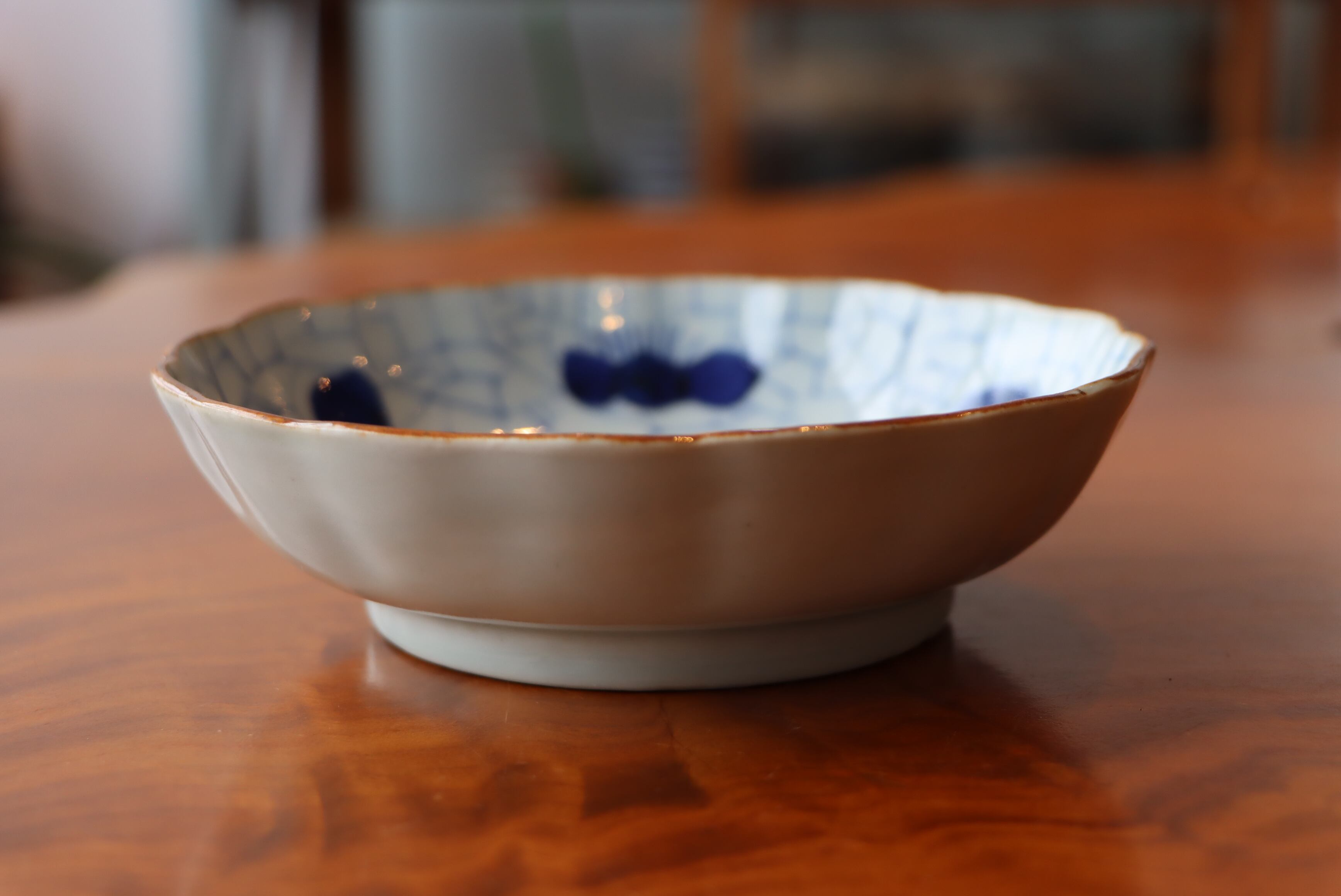 焼成時に窯の中でできる鉄分、くっつき、かまきず、経年による釉薬の薄れがございます。また、一枚一枚手描き、手作りですので器のサイズ(ミリ)、色味、描かれている文様の大きさなど個体差があり、ひとつとして同じものはございません。そういった時代感、個性をご理解いただき、楽しんでくだされば幸いです。電子レンジや食器洗い乾燥機のご使用はお控えください。