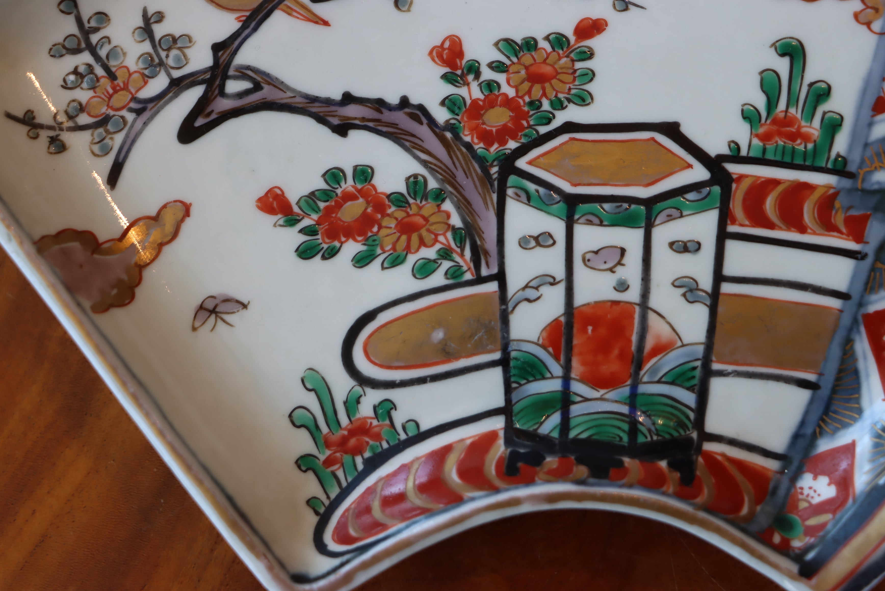 扇形皿 九谷焼 色絵 花鳥文