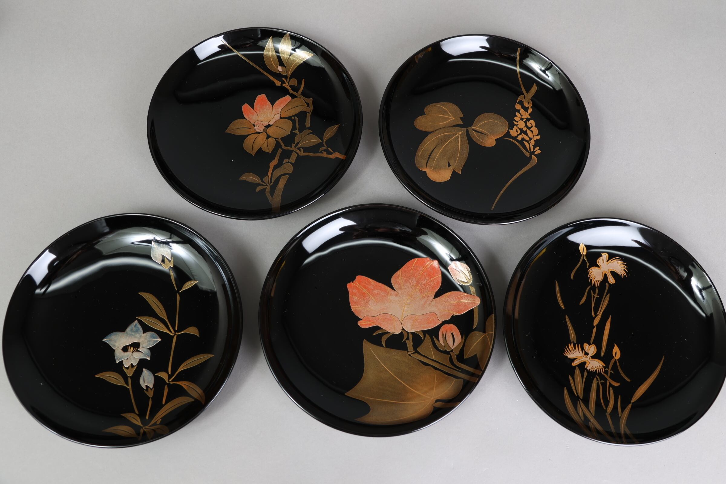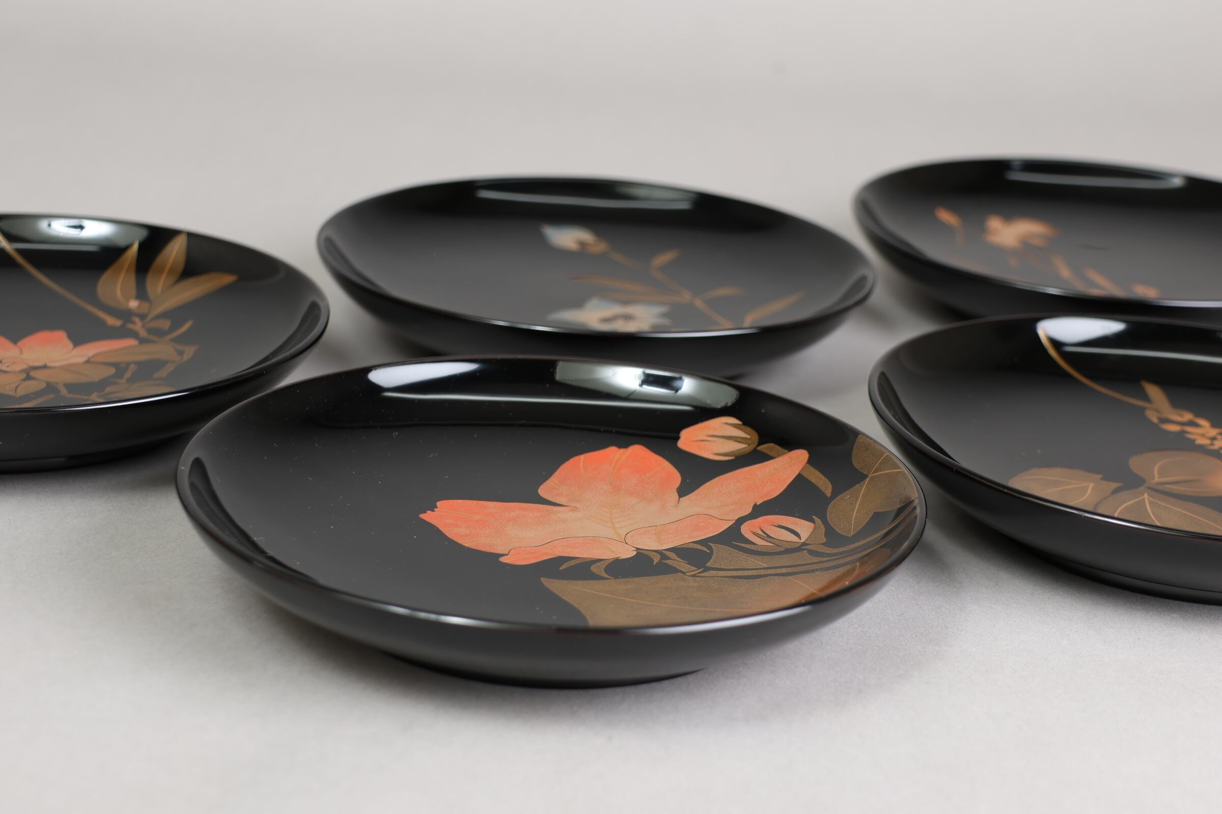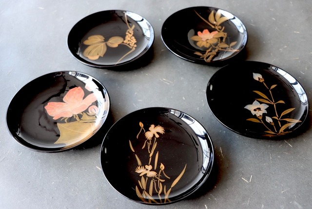 輪島塗 図替 草花蒔絵 菓子皿 銘々皿 五枚組 共箱