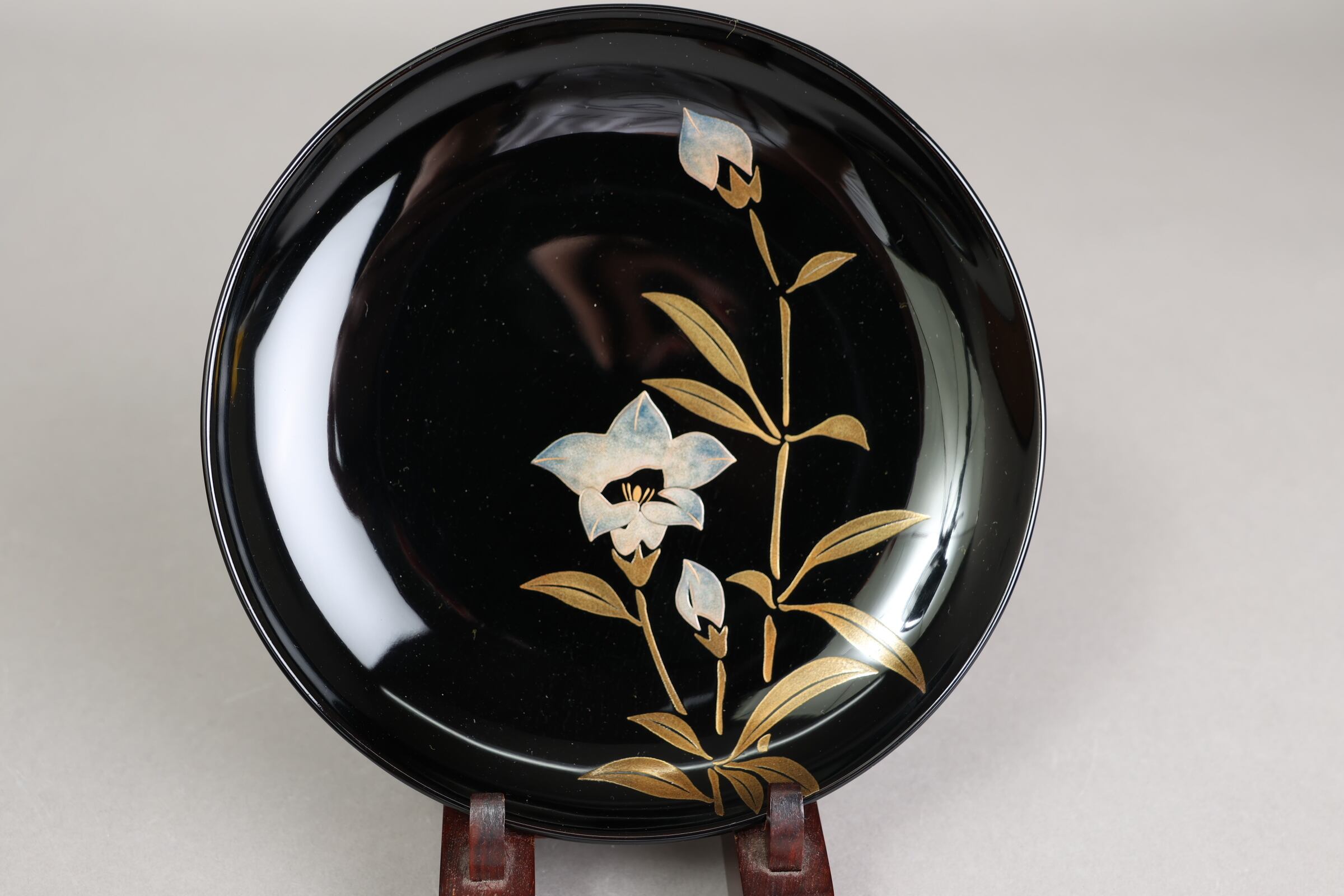静謐な漆の黒に、優美な草花が一客ずつ描き分けられた、輪島塗の図替わり銘々皿です❗