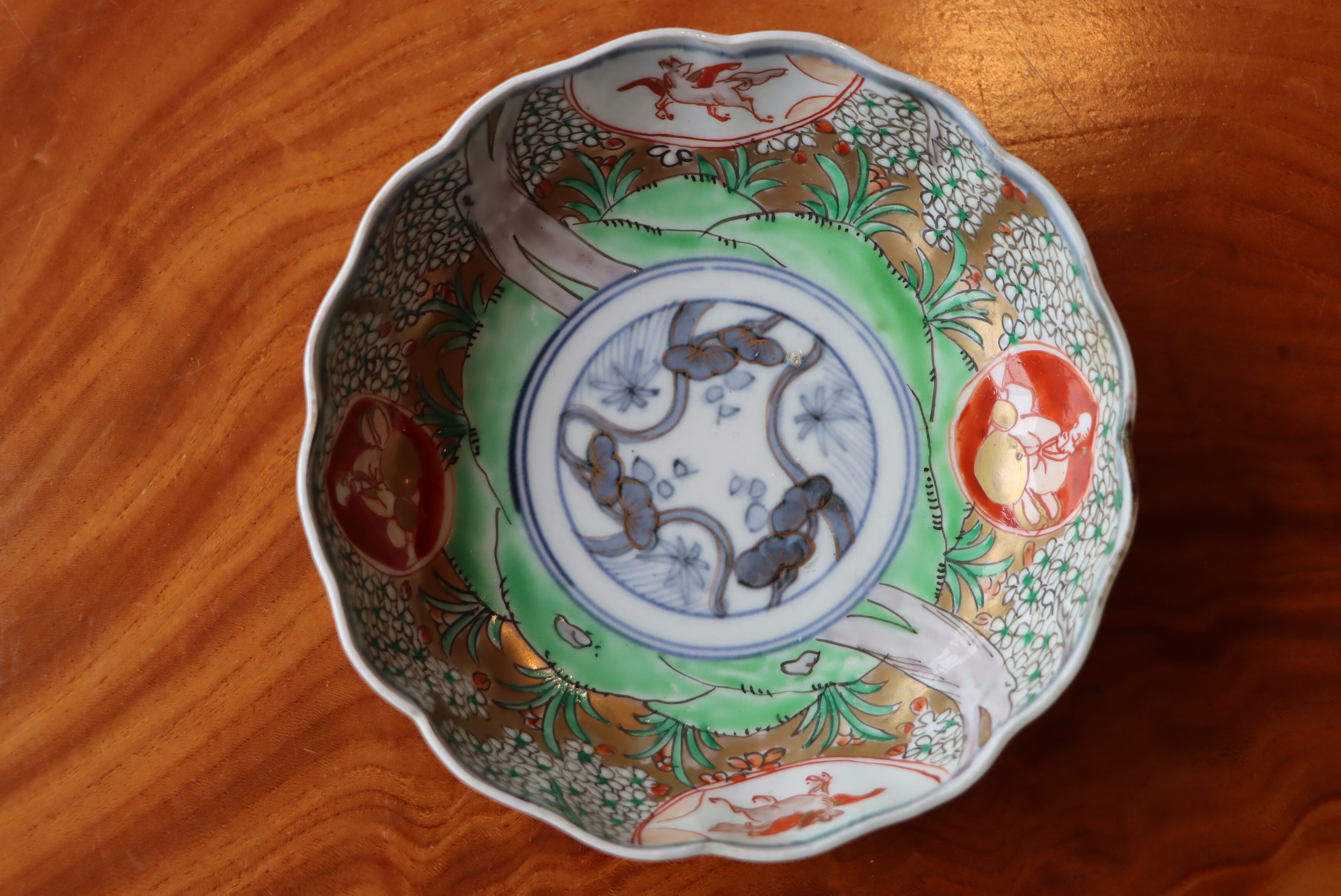 状態:焼成時に窯の中でできる鉄分、くっつき、かまきず、経年による釉薬の薄れがございます。また、一枚一枚手描き、手作りですので器のサイズ(ミリ)、色味、描かれている文様の大きさなど個体差があり、ひとつとして同じものはございません。そういった時代感、個性をご理解いただき、楽しんでくだされば幸いです。電子レンジや食器洗い乾燥機のご使用はお控えください。