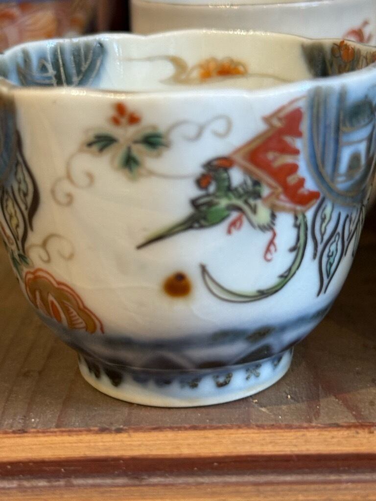 状態:鉄分あり。焼成時に窯の中でできる鉄分、くっつき、かまきず、経年による釉薬の薄れがございます。また、一枚一枚手描き、手作りですので器のサイズ(ミリ)、色味、描かれている文様の大きさなど個体差があり、ひとつとして同じものはございません。そういった時代感、個性をご理解いただき、楽しんでくだされば幸いです。電子レンジや食器洗い乾燥機のご使用はお控えください。