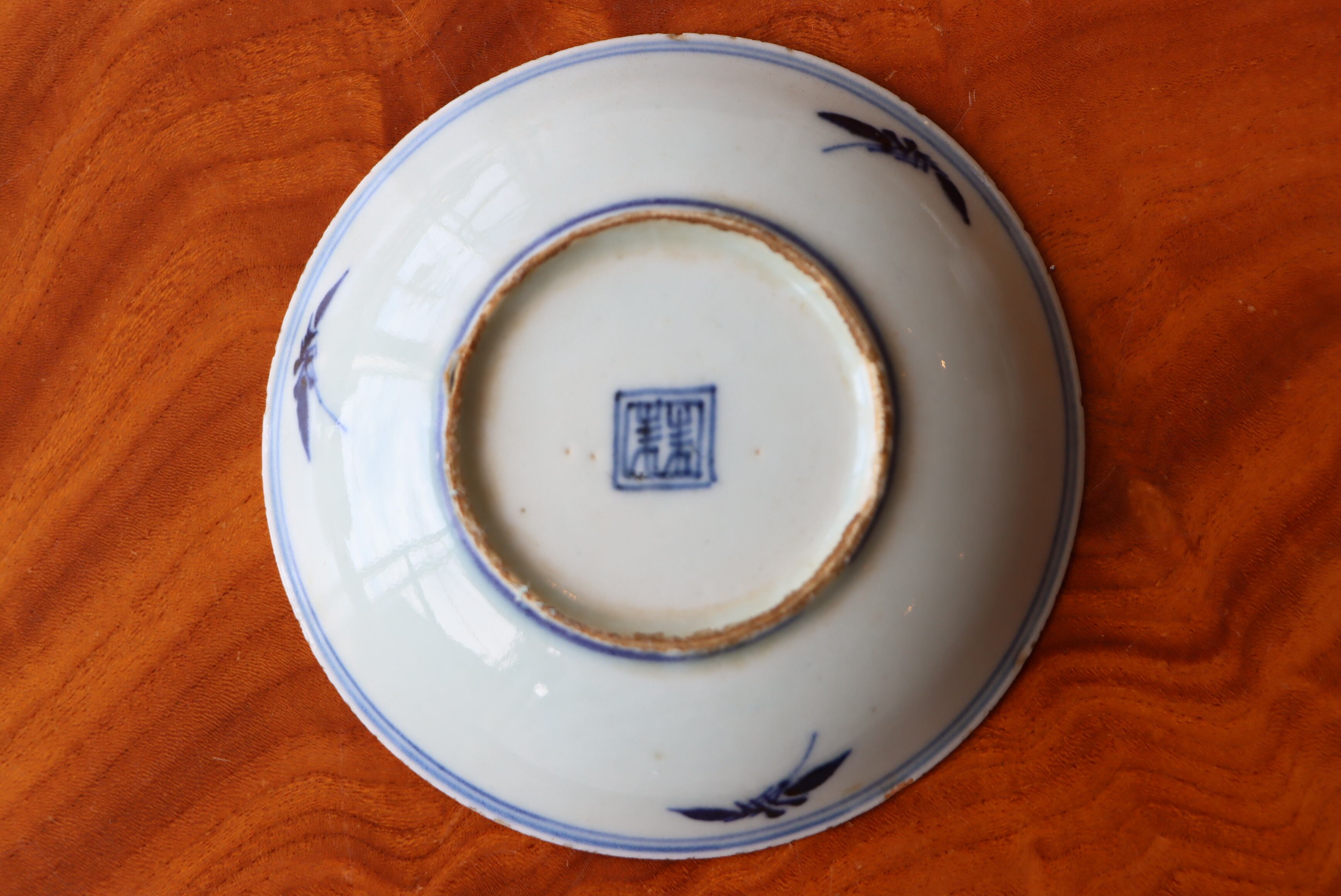 状態:虫食い。虫食いとは、陶磁器の縁に表れた釉薬の小さな剝落のあと。虫が食ったあとに似ていることから、こう呼ばれる。また、作陶において、骨董の味わいを表現するための技法としても用いられる。