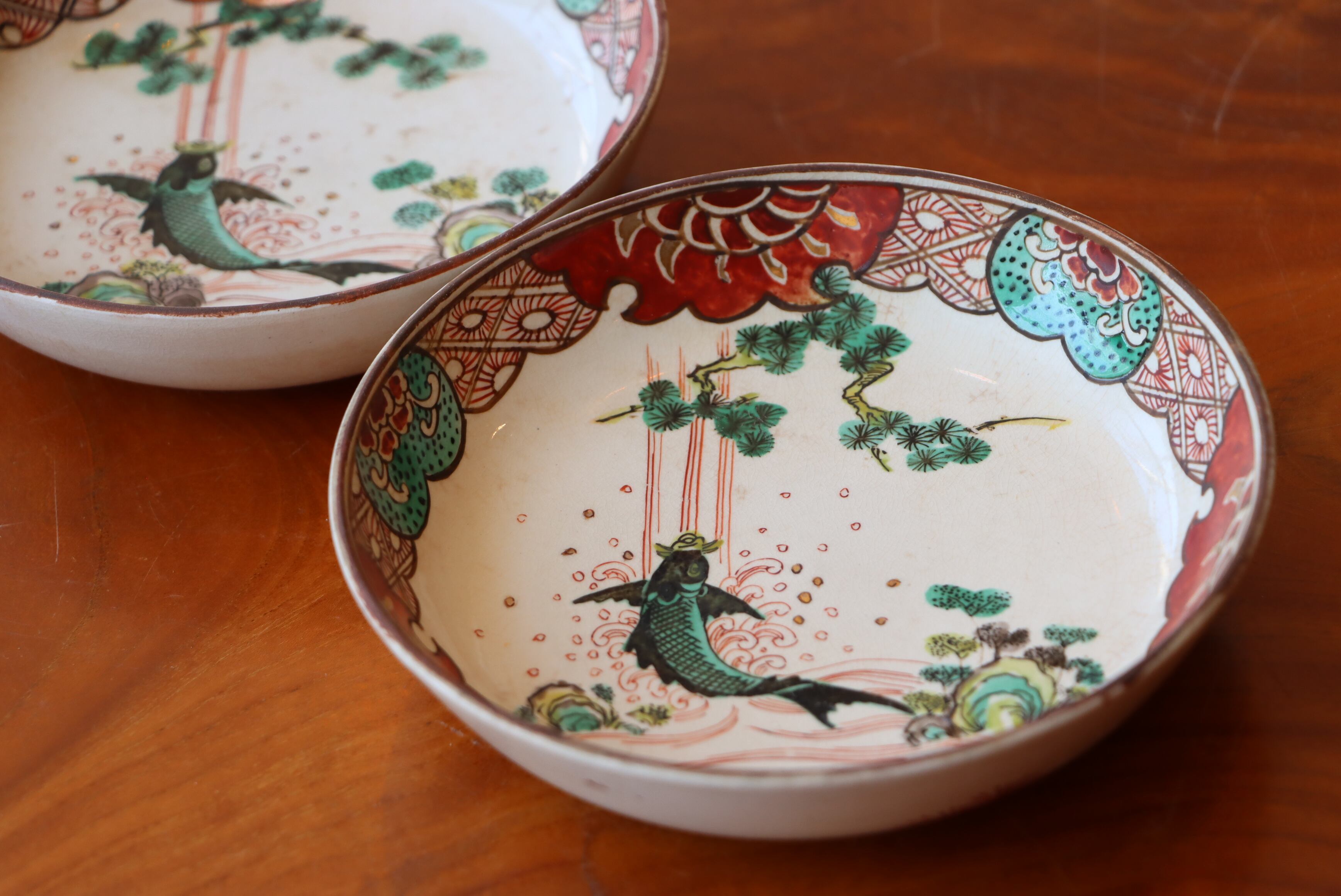 この膾皿には、そんな願いを宿す鯉滝登文が色絵で華やかに描かれています‼