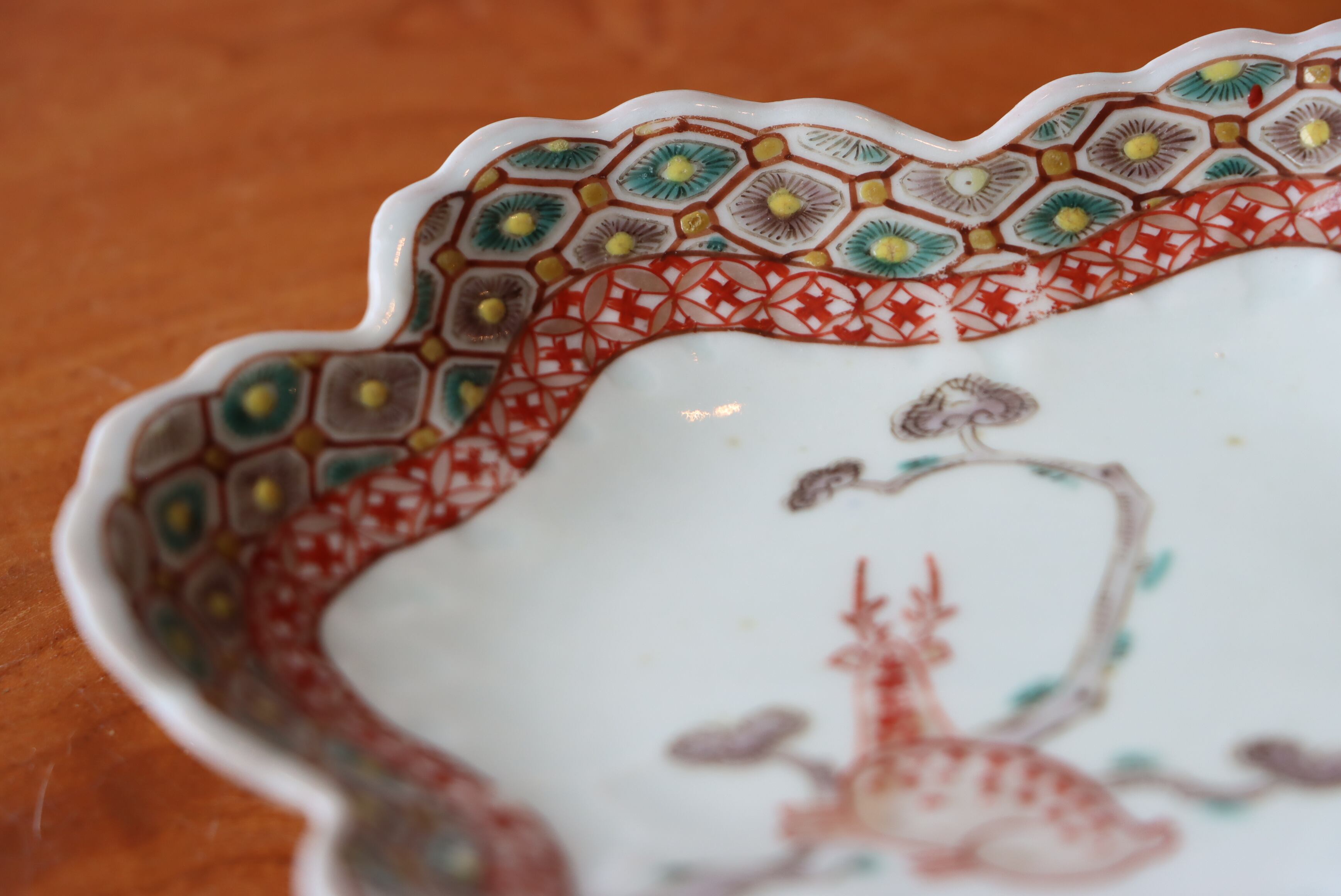 変形皿 伊万里焼 色絵 鹿松文