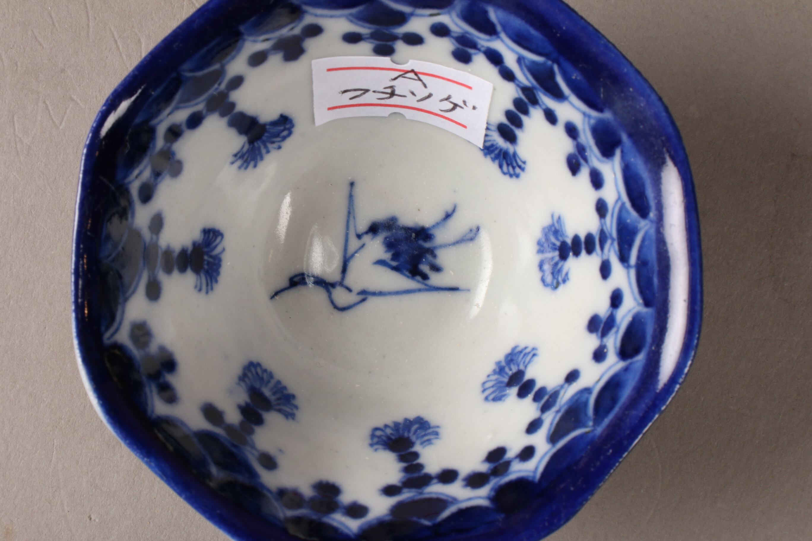 焼成時に窯の中でできる鉄分、くっつき、かまきず、経年による釉薬の薄れがございます。また、一枚一枚手描き、手作りですので器のサイズ(ミリ)、色味、描かれている文様の大きさなど個体差があり、ひとつとして同じものはございません。そういった時代感、個性をご理解いただき、楽しんでくだされば幸いです。電子レンジや食器洗い乾燥機のご使用はお控えください。