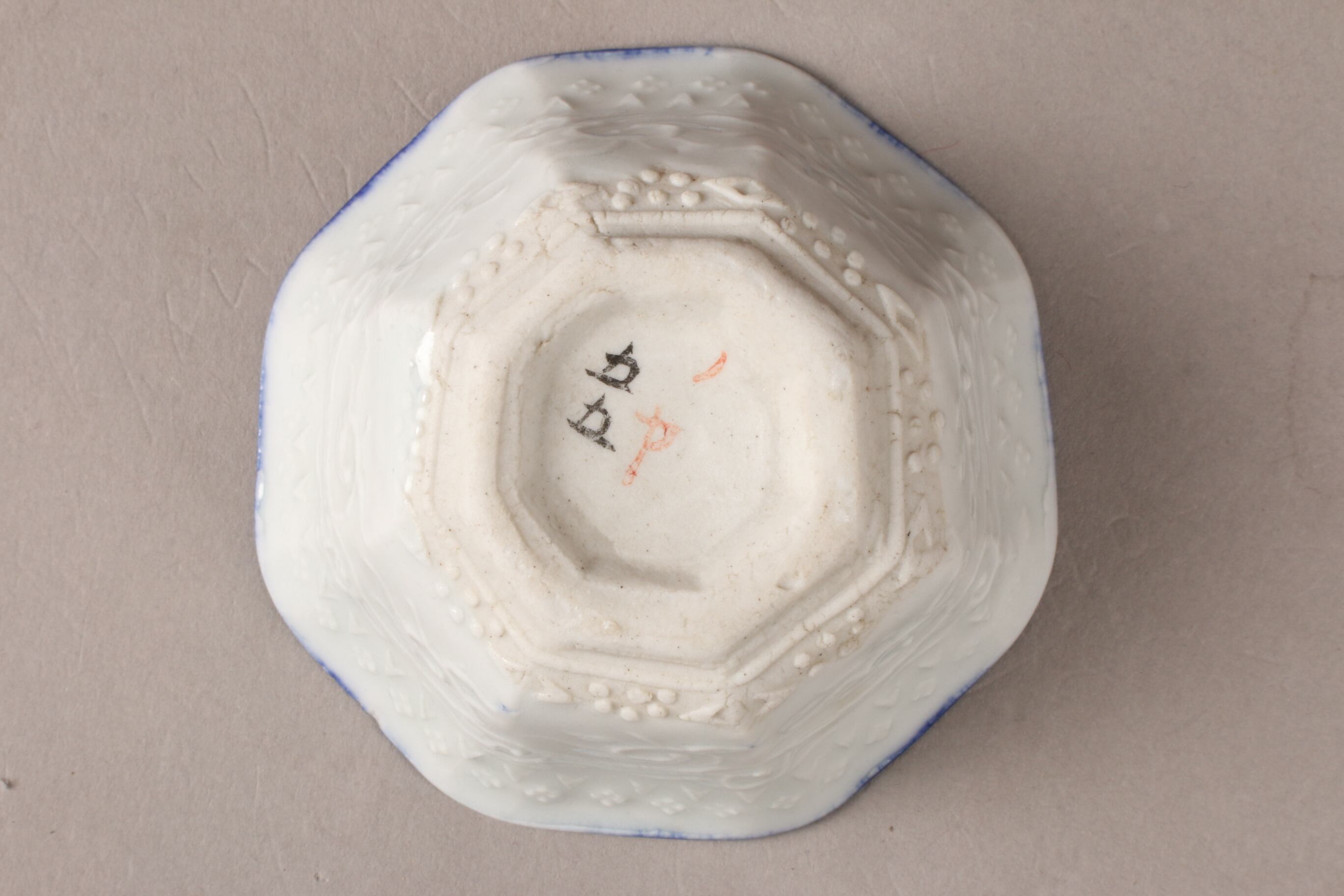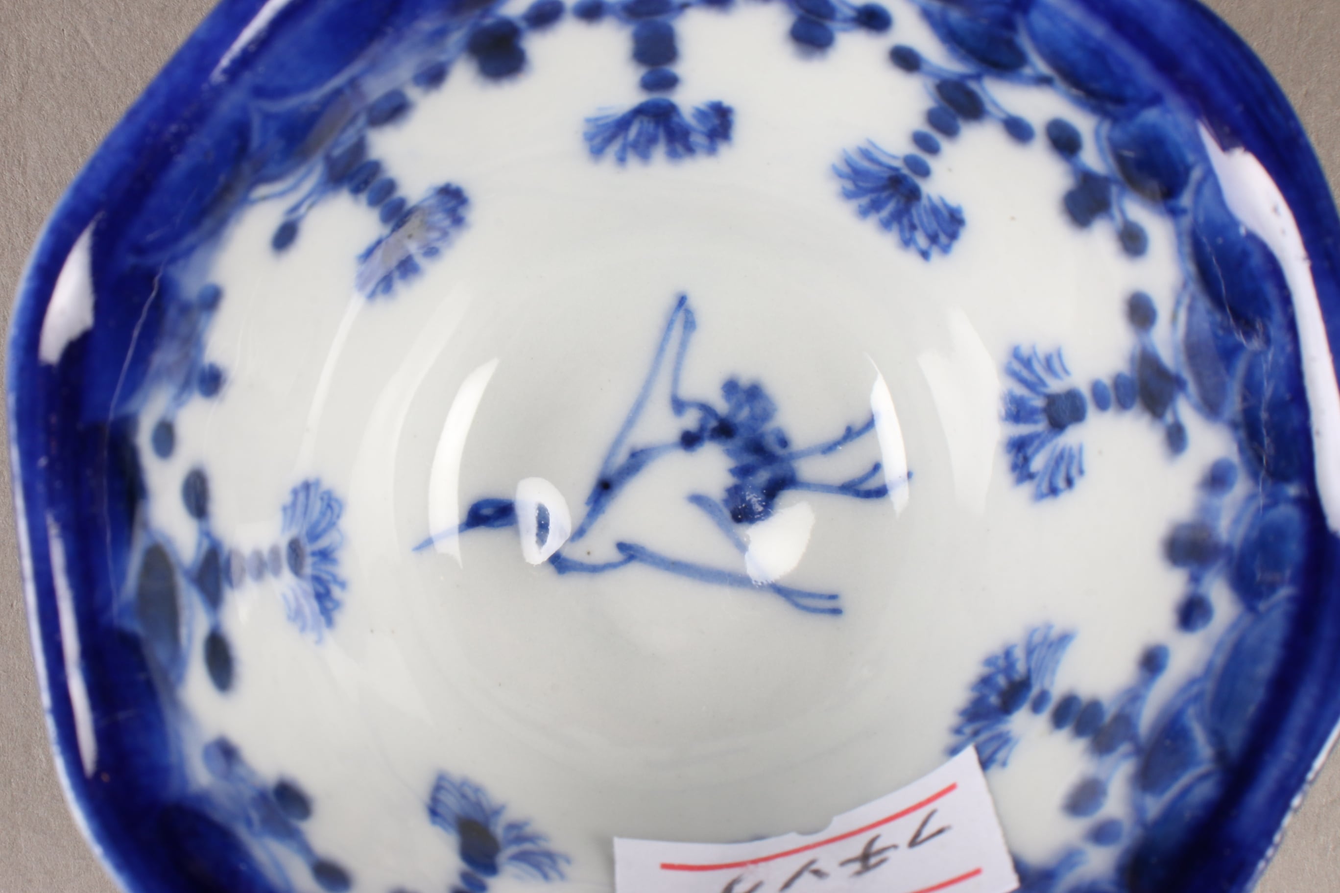 縁ソゲ 猪口 染付 陽刻 瓔珞鶴文 C
