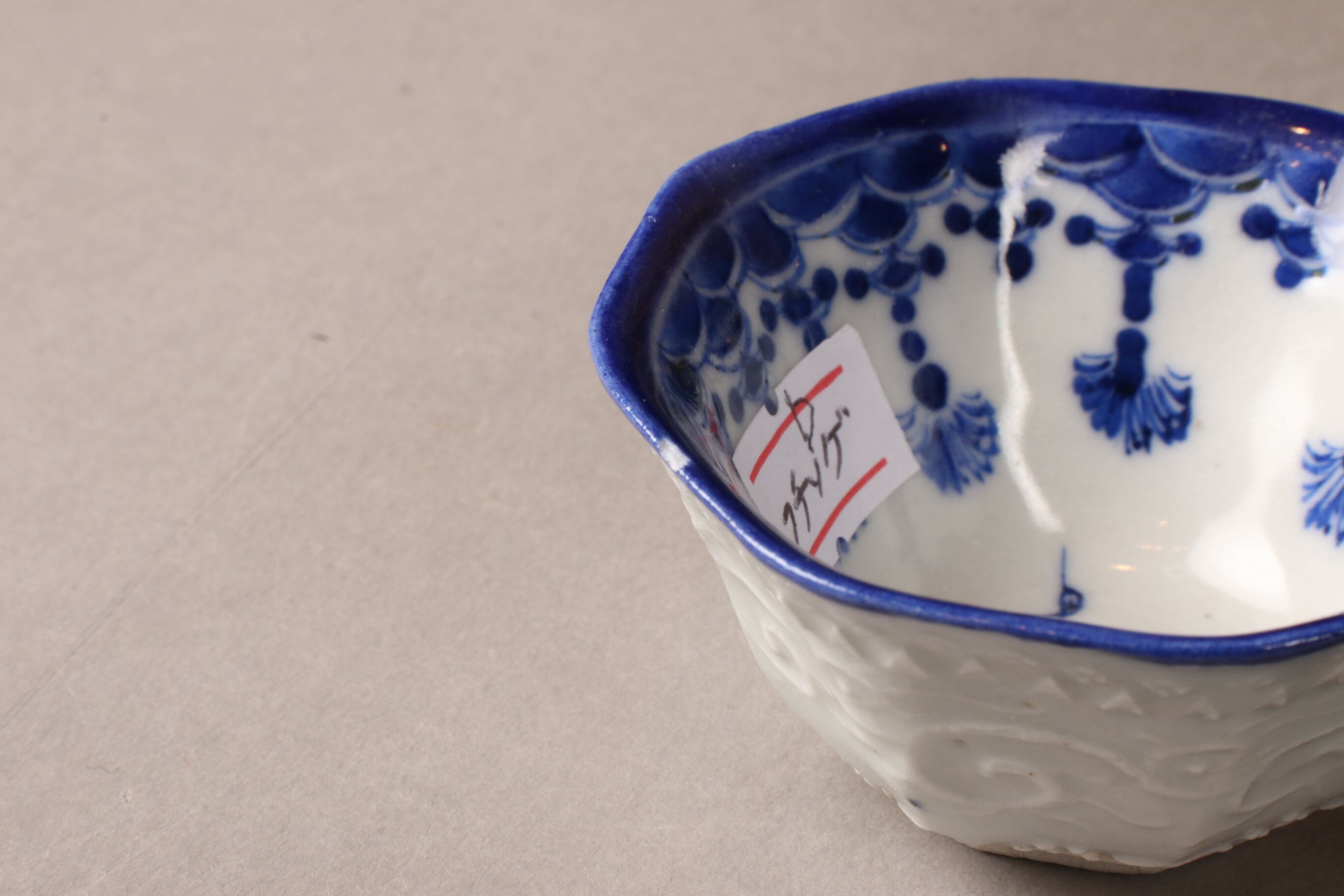 焼成時に窯の中でできる鉄分、くっつき、かまきず、経年による釉薬の薄れがございます。また、一枚一枚手描き、手作りですので器のサイズ(ミリ)、色味、描かれている文様の大きさなど個体差があり、ひとつとして同じものはございません。そういった時代感、個性をご理解いただき、楽しんでくだされば幸いです。電子レンジや食器洗い乾燥機のご使用はお控えください。