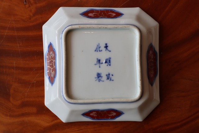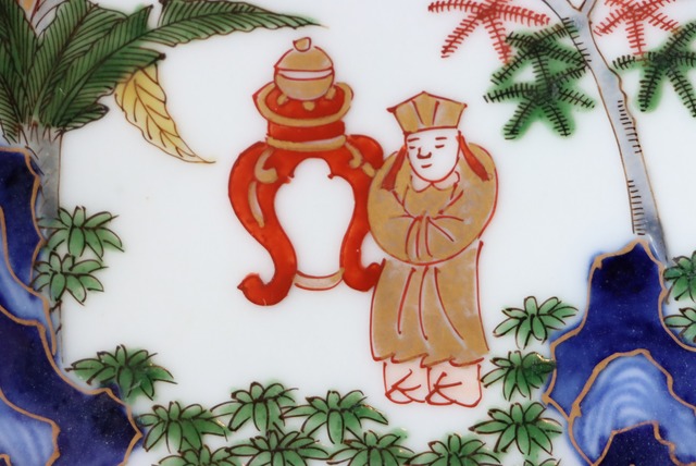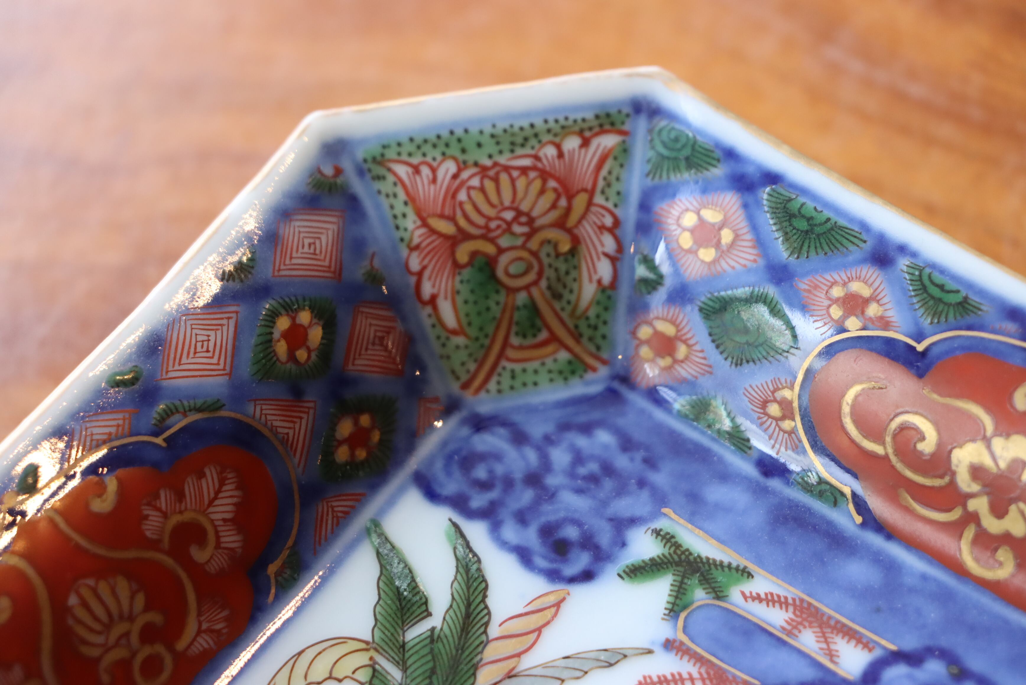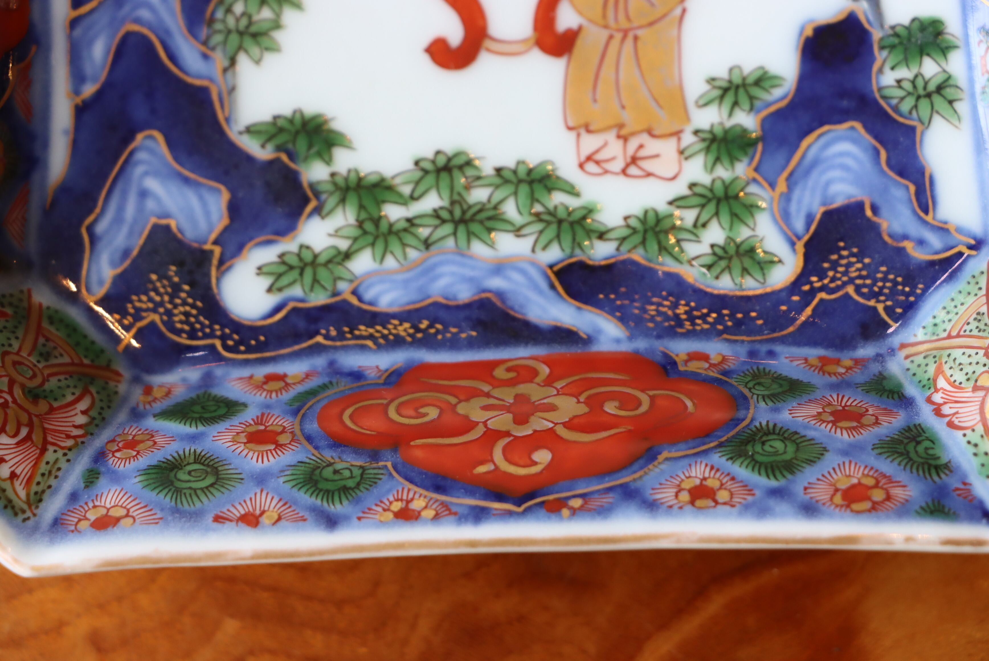 隅切四方皿 五枚組 大聖寺伊万里 色絵 人物風景文