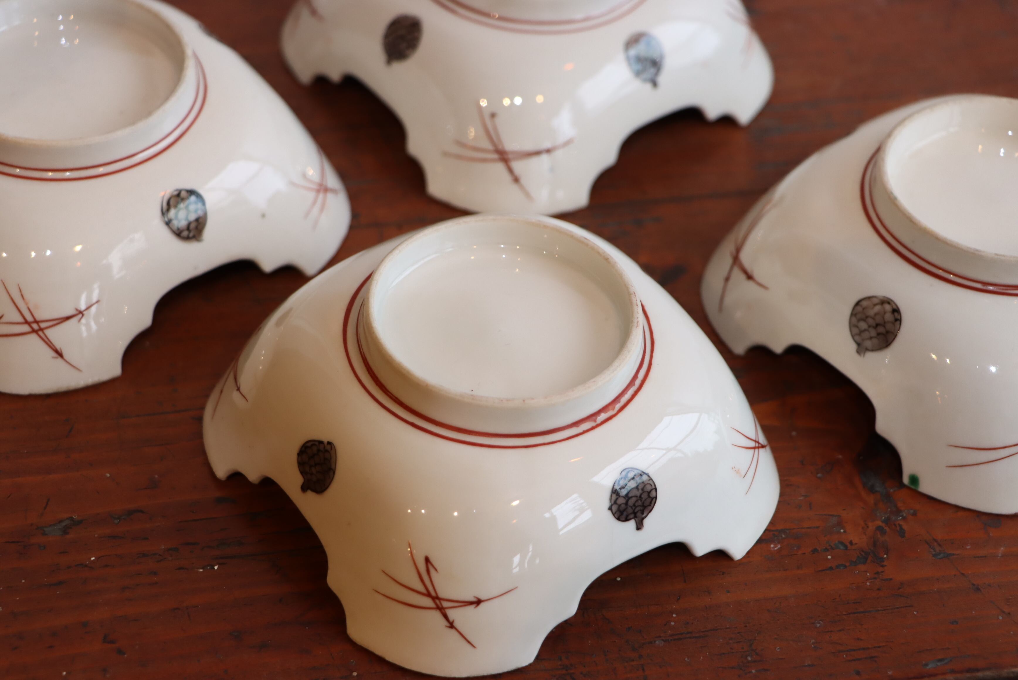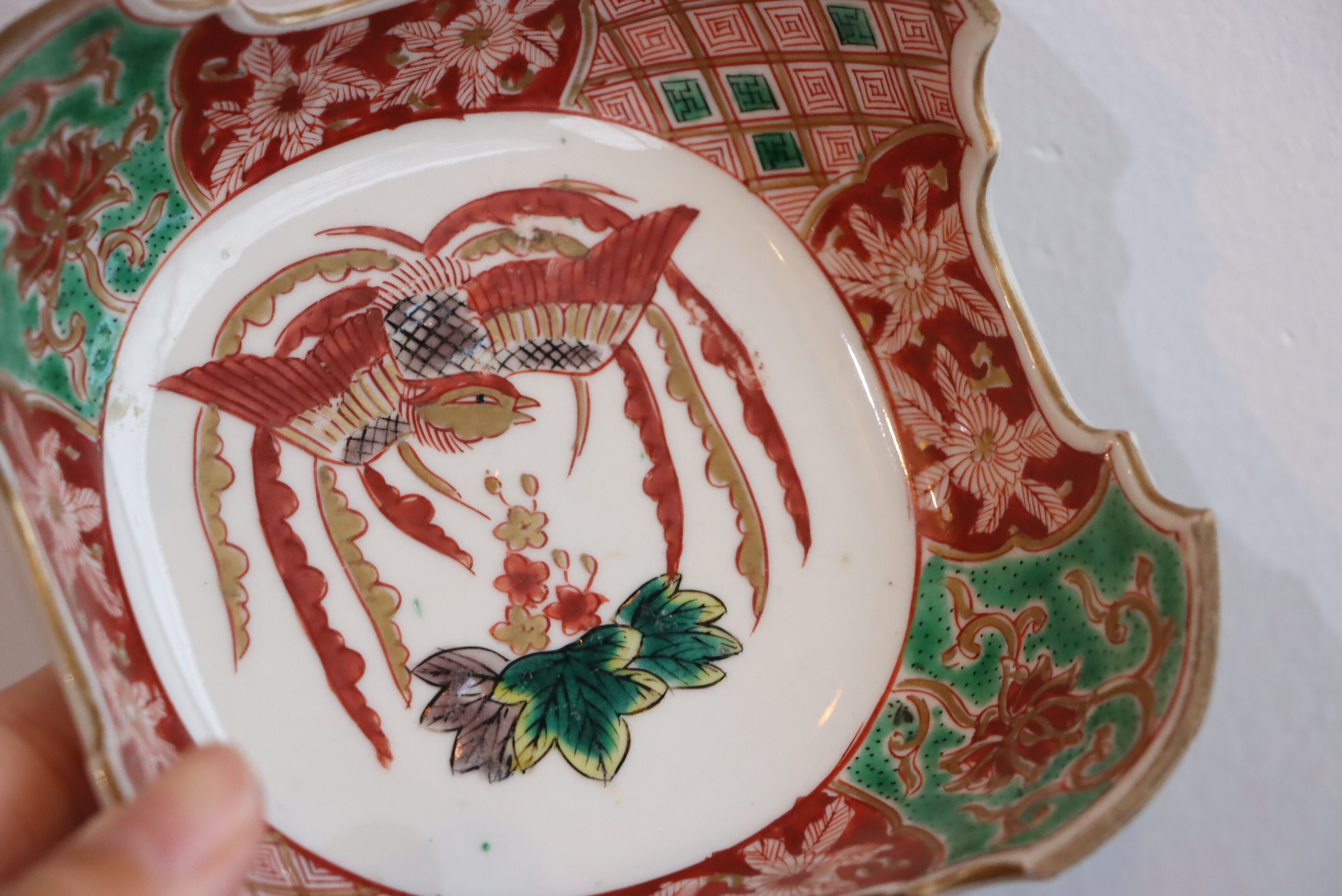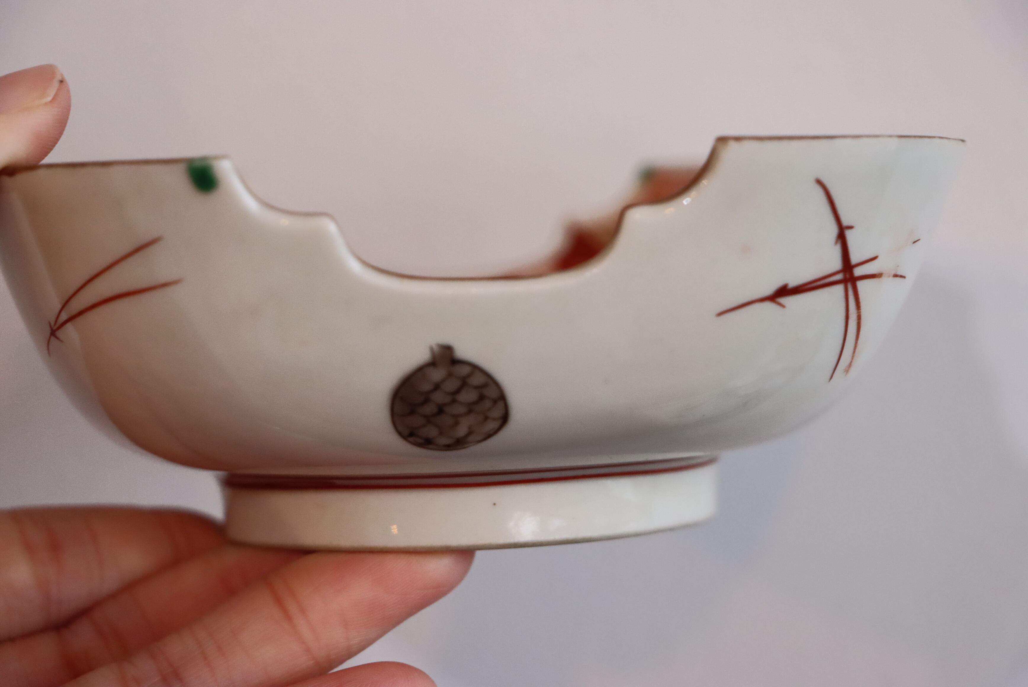 独特な形と鮮やかな赤絵、緑色が特徴の向付。