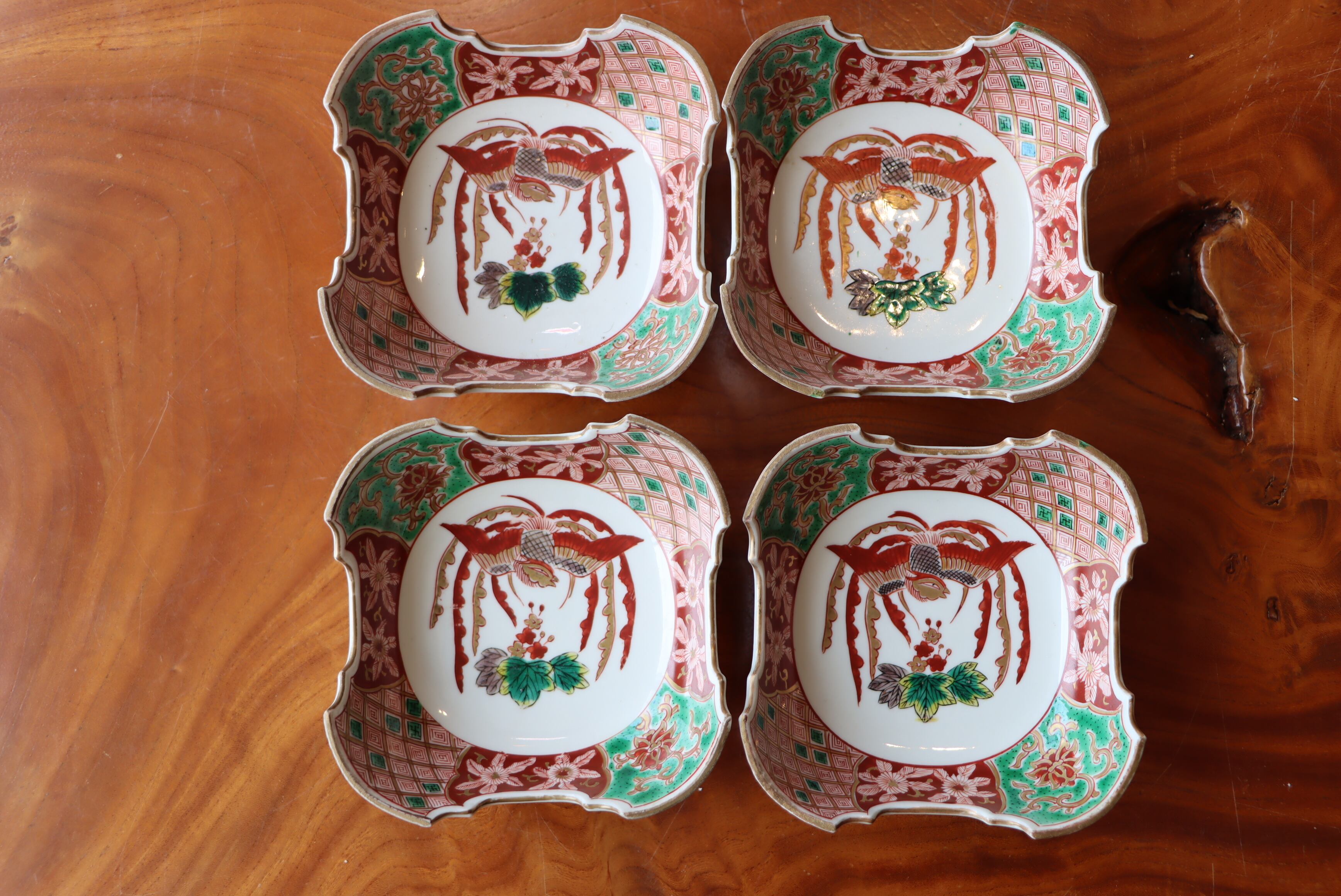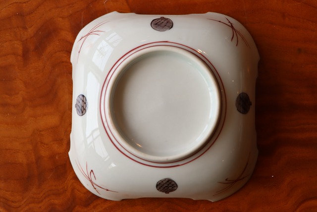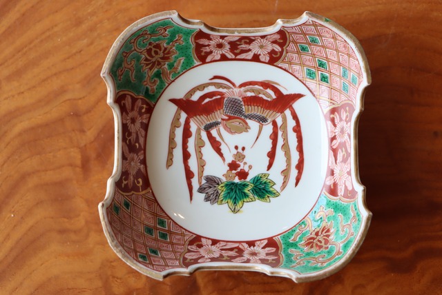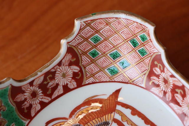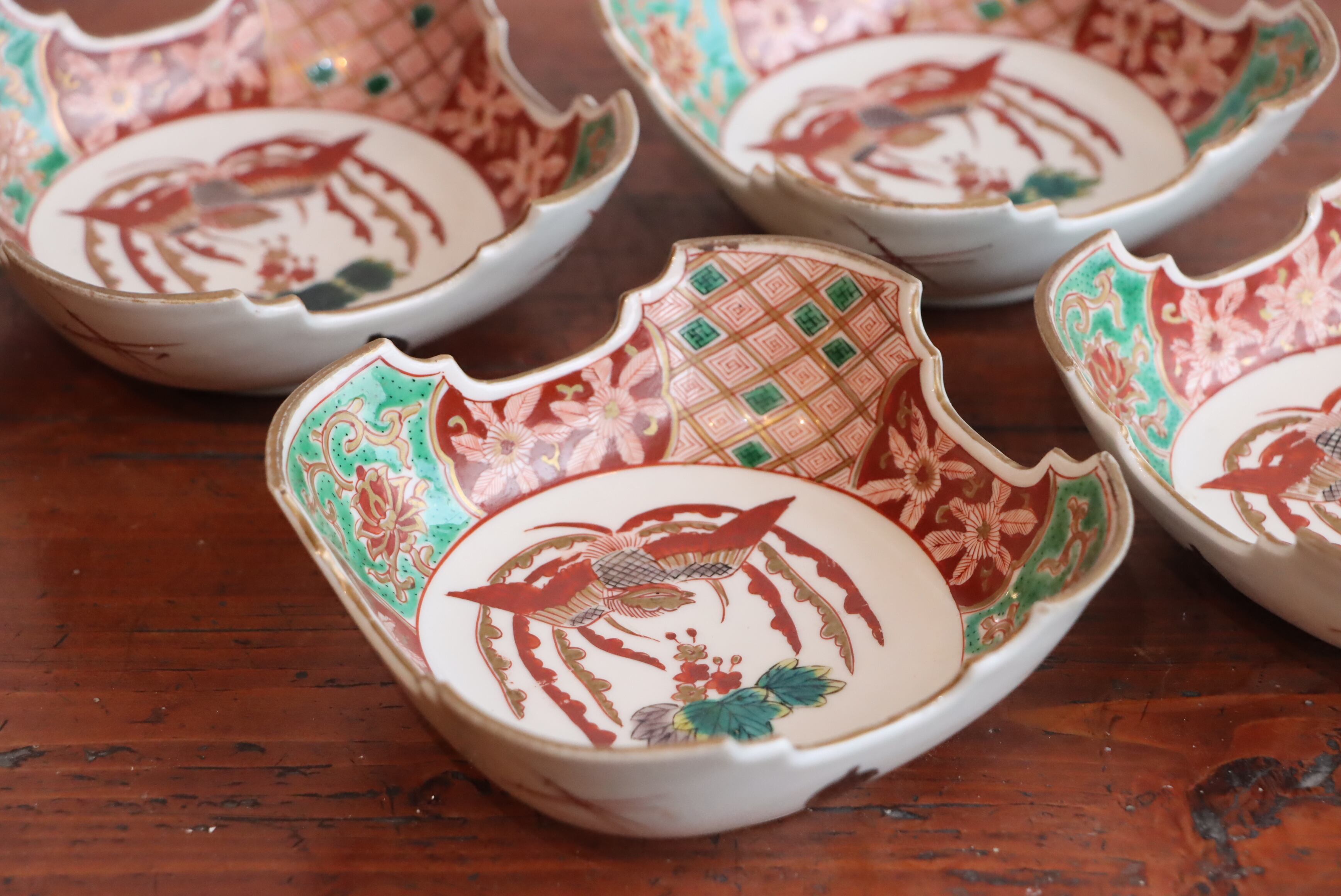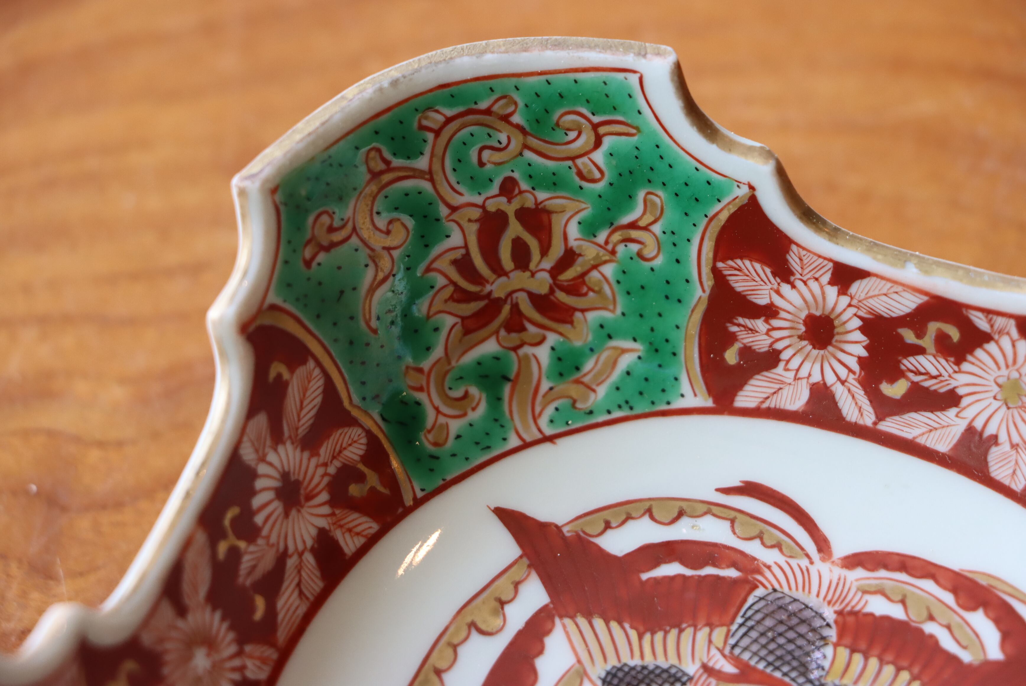 独特な形と鮮やかな赤絵、緑色が特徴の向付。